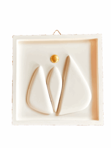 Récemment, Fanny s’est lancée dans les bas-reliefs en plâtre : cairns, totems, fleurs stylisées et mini soliflores. Elle commence par mouler ses formes qui sont ensuite retravaillées à la main et assemblées au gré de son imagination. Elle dote chacune de ses pièces de détails minutieux et originaux, les rendant ainsi totalement uniques.