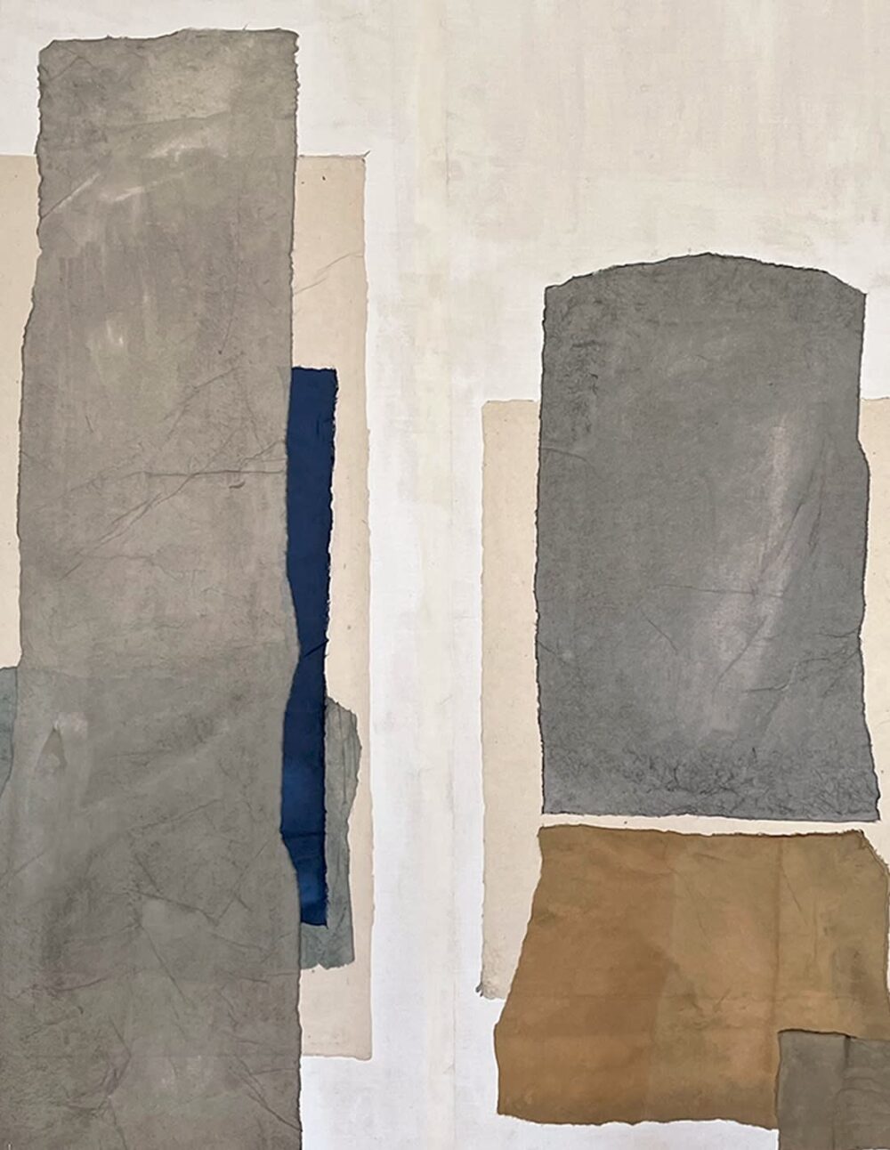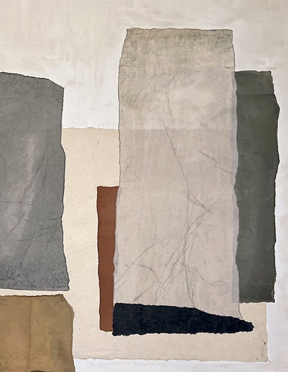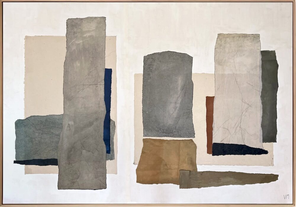 Les tons neutres et l’aspect texturé de ces œuvres s’accordent parfaitement aux matériaux bruts qu’on peut retrouver chez soi : pierres, bois, briques.