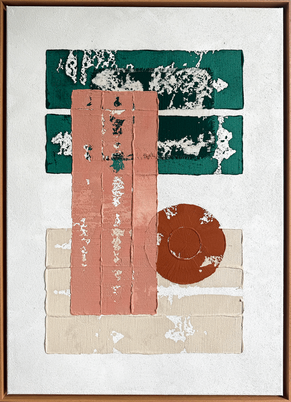 Peinture à la chaux, acrylique, lin lavé, eau de mer & sable de Croatie sur chassis entoilé