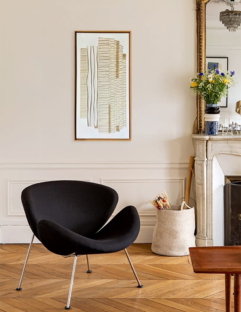 Textiles anciens en lin, gaufrés et empesés, collés sur toile recyclée et châssis bois