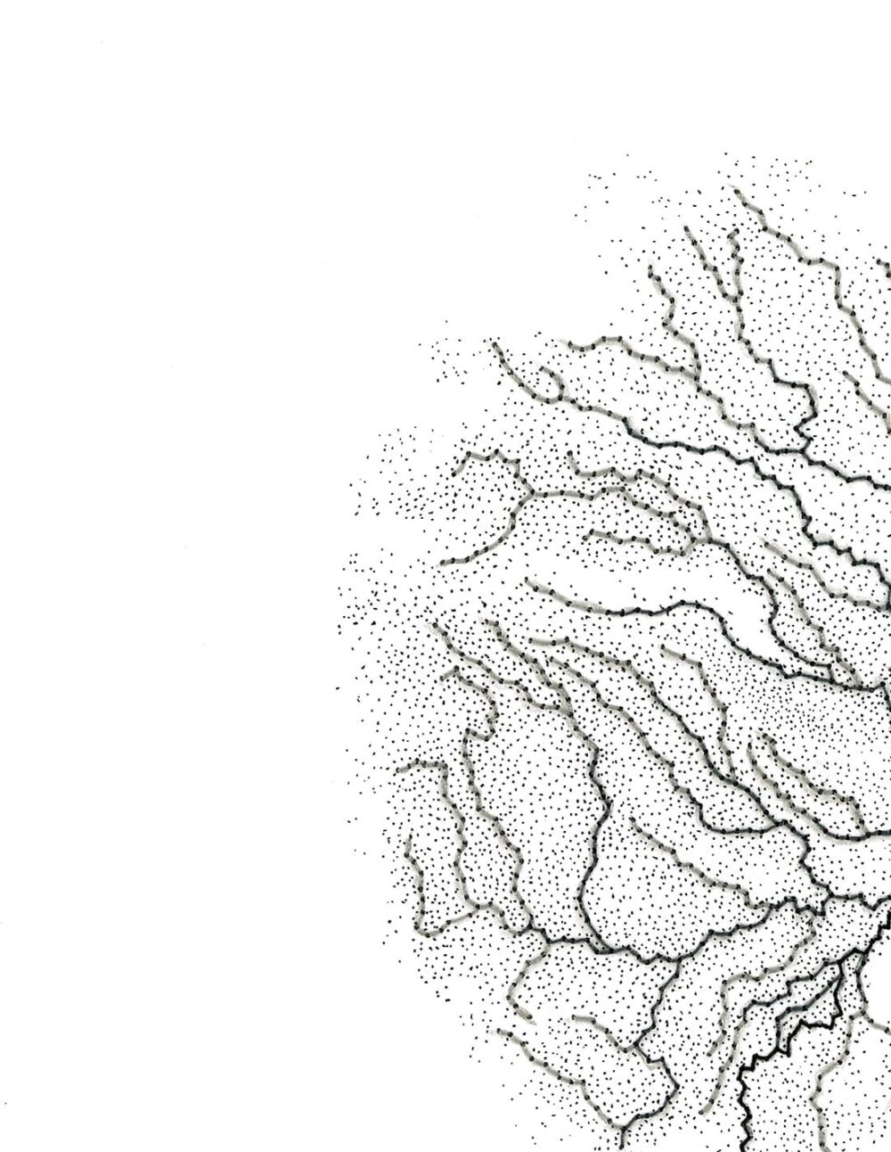Fil à coudre, crayon et encre sur papier