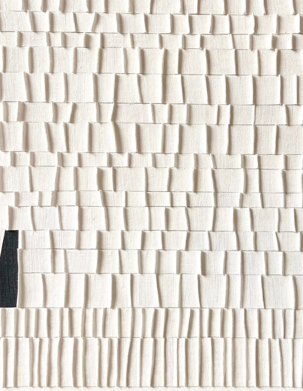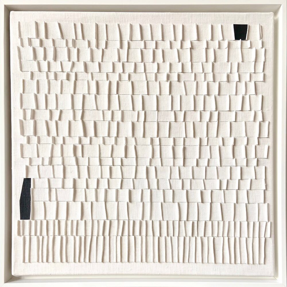 Textiles anciens en lin, gaufrés et empesés, collés sur toile recyclée et châssis bois