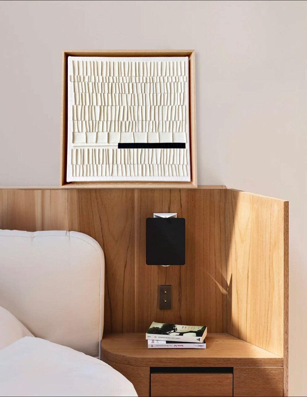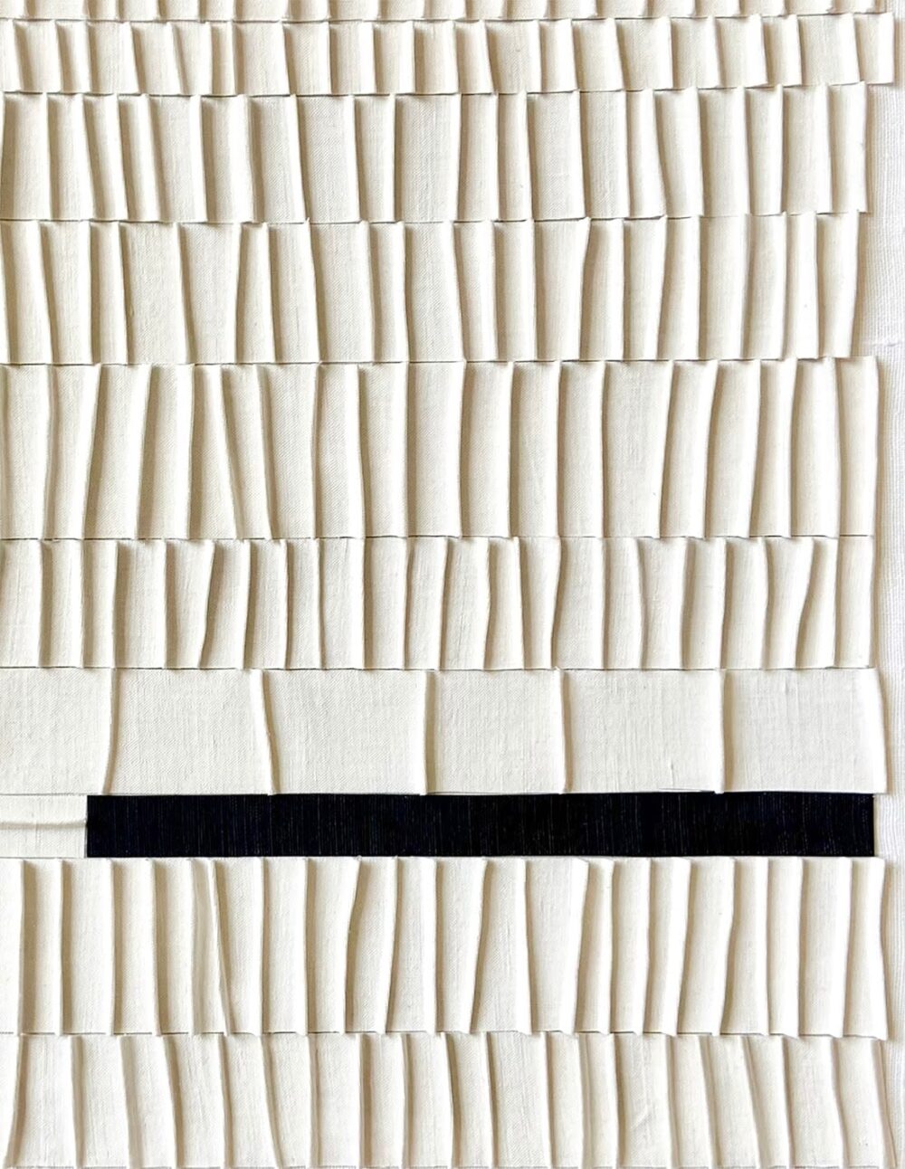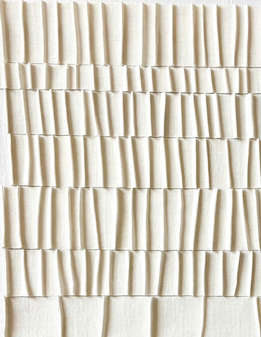 Textiles anciens en lin, gaufrés et empesés, collés sur toile recyclée et châssis bois