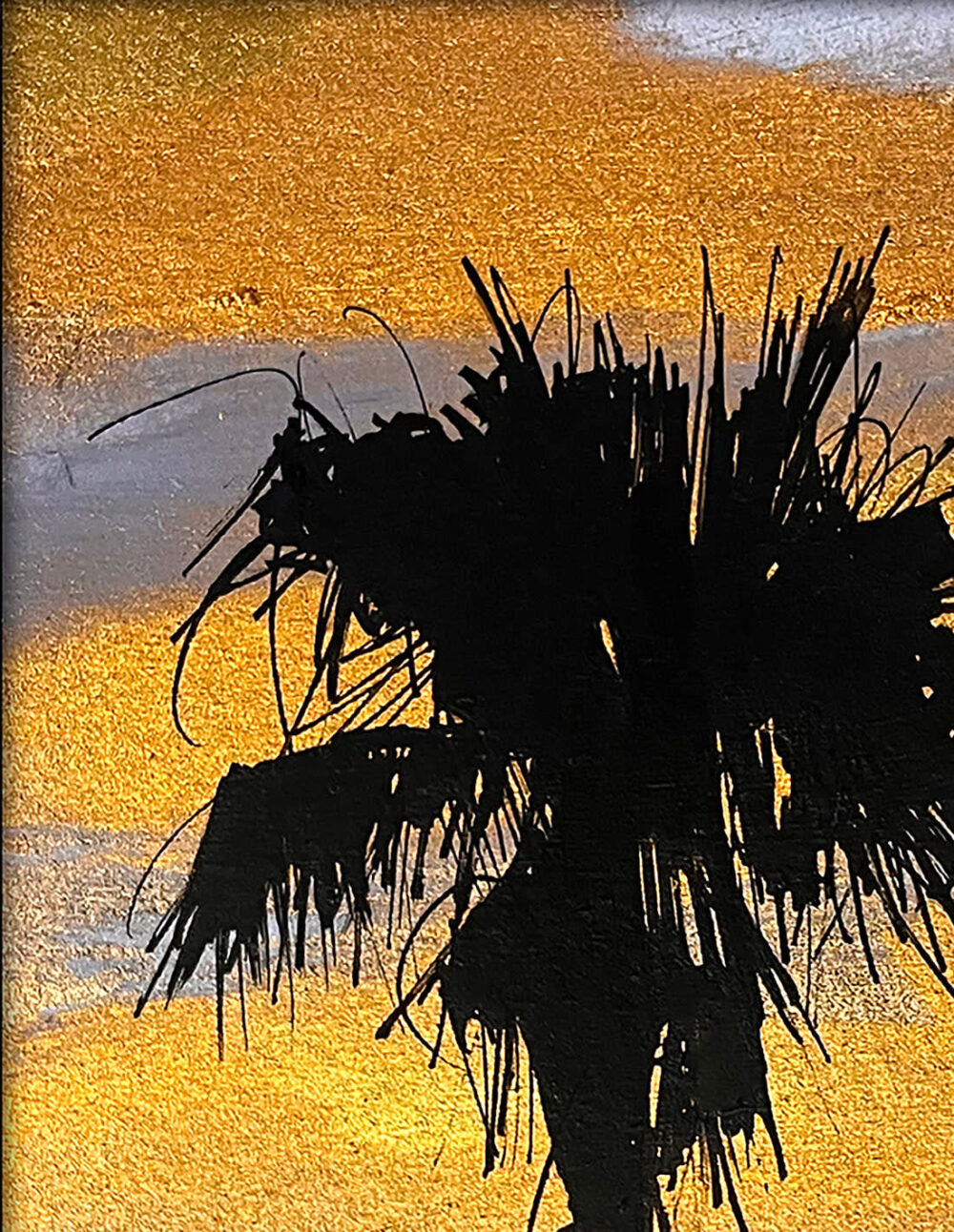 Pigments dorés et encre POSCA sur papier bois