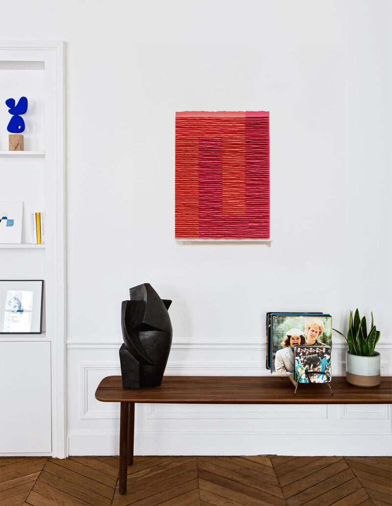 Parce qu’on trouve irrésistible la dualité entre les papiers déchirés en lambeaux et la composition finale rigoureuse et graphique. Parce qu’on est fasciné par la précision et la délicatesse des franges de papier coloré qui s’unissent les unes aux autres harmonieusement.