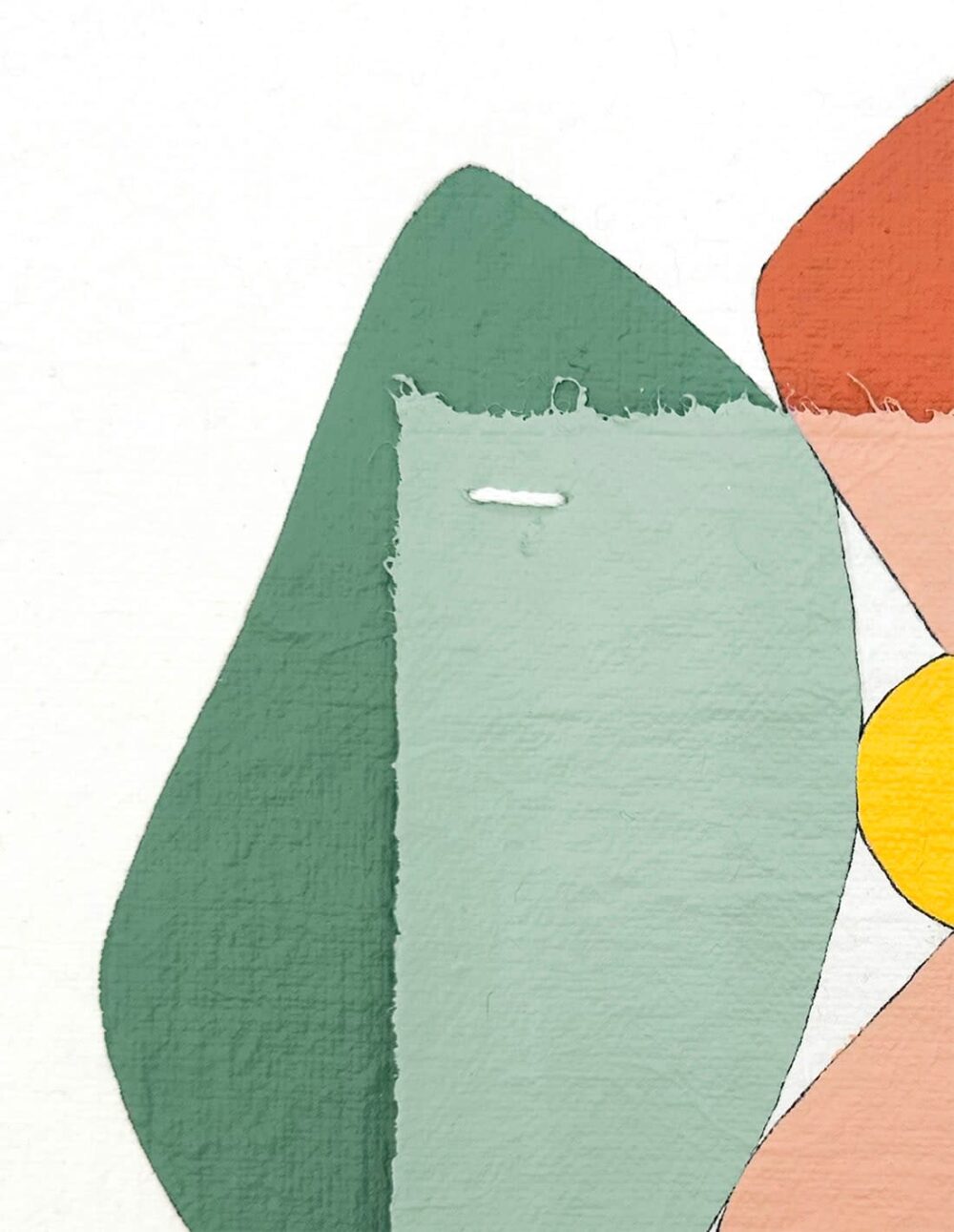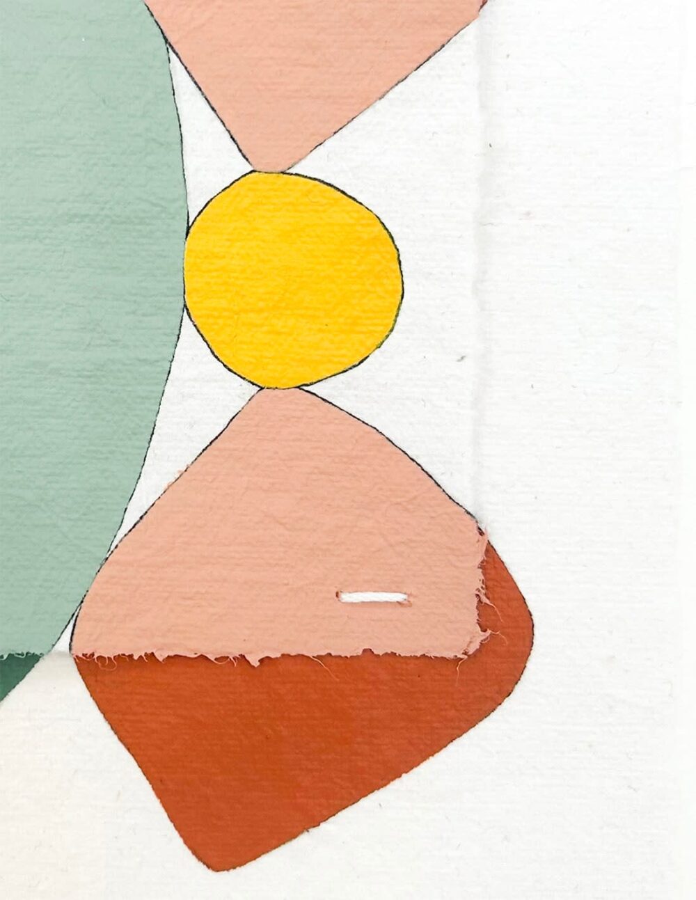 Peinture acrylique, crayon et fil de coton cousu sur papier chiffon en coton