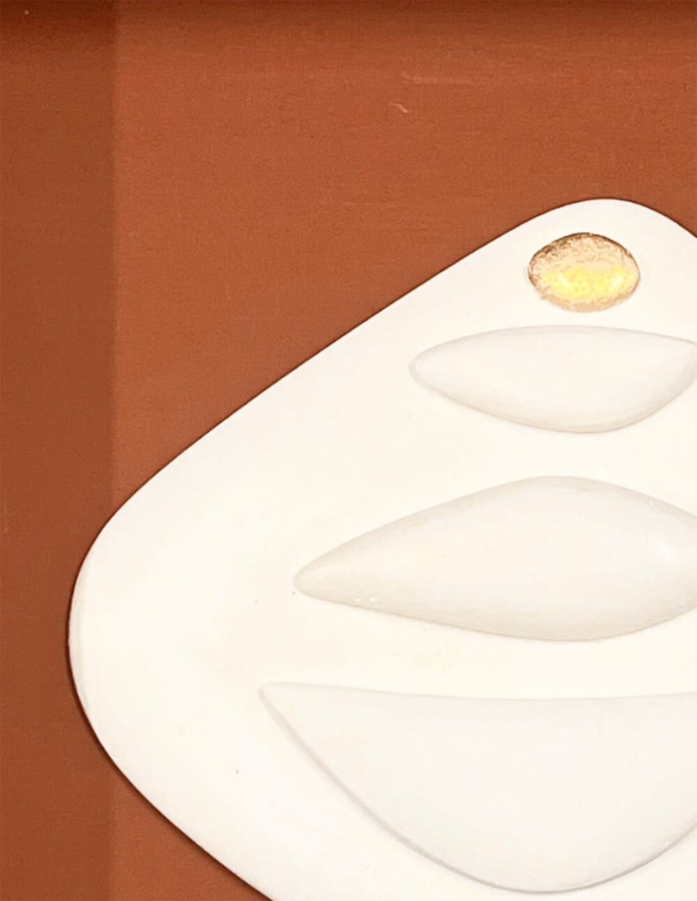 Bas-relief en plâtre, or 23 carats sur cadre en bois peint