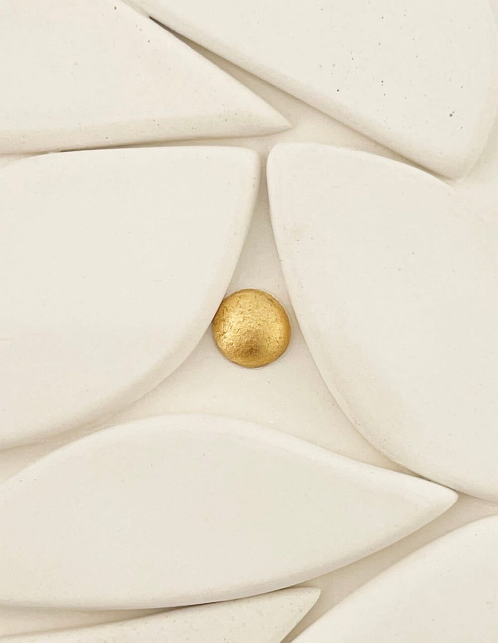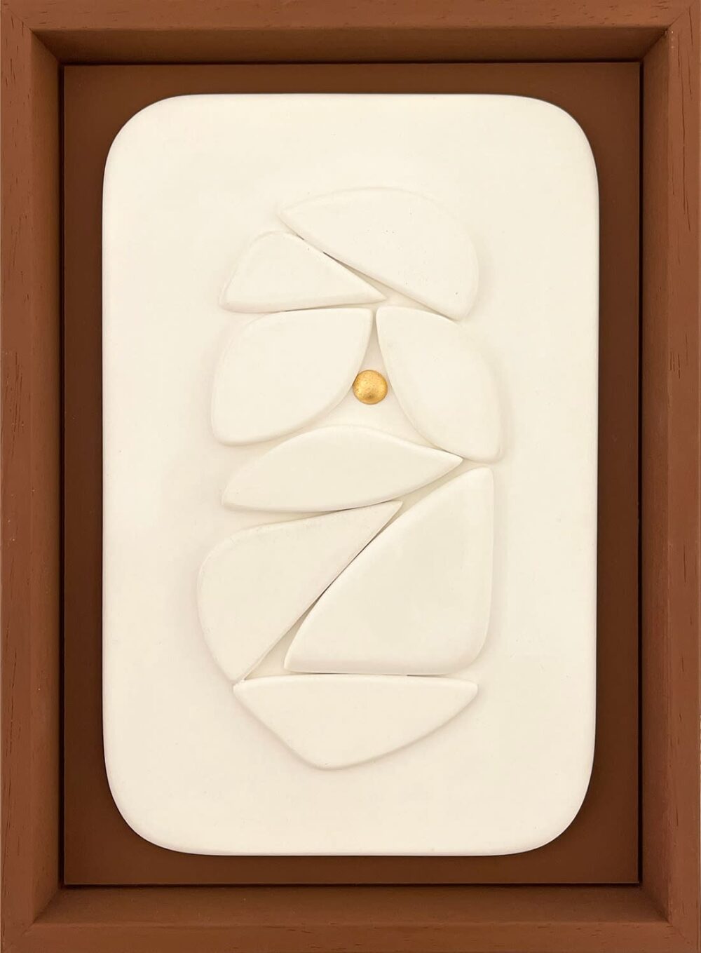 Bas-relief en plâtre, or 23 carats sur cadre en bois peint