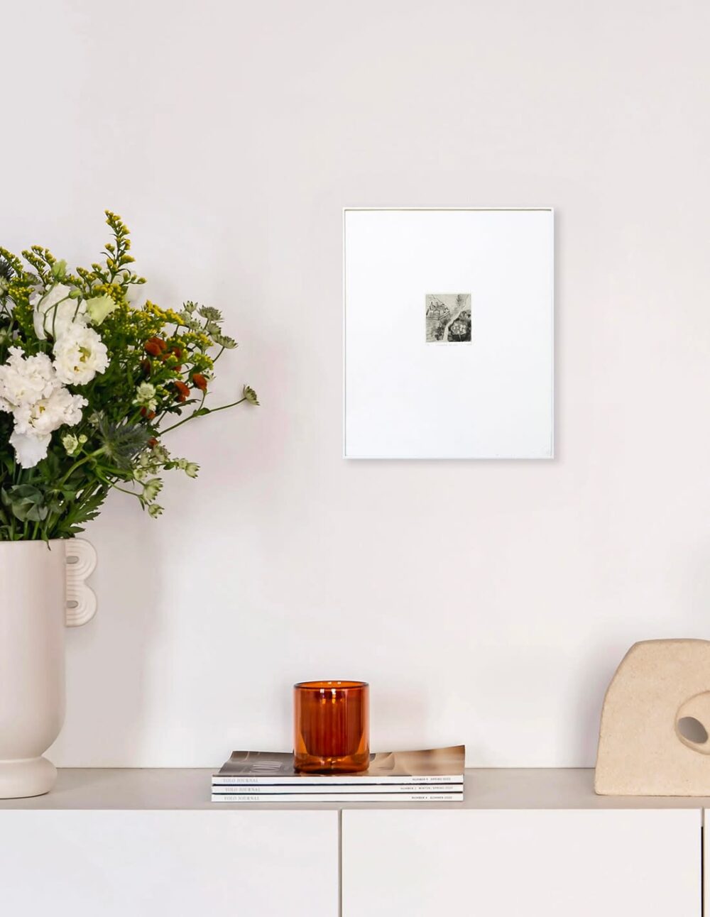 On installe les gravures de Claire à portée de regard pour percevoir le chassé-croisé des nuances colorées, des ombres, lumières et textures. On évite les expositions directes au soleil pour préserver les encres.