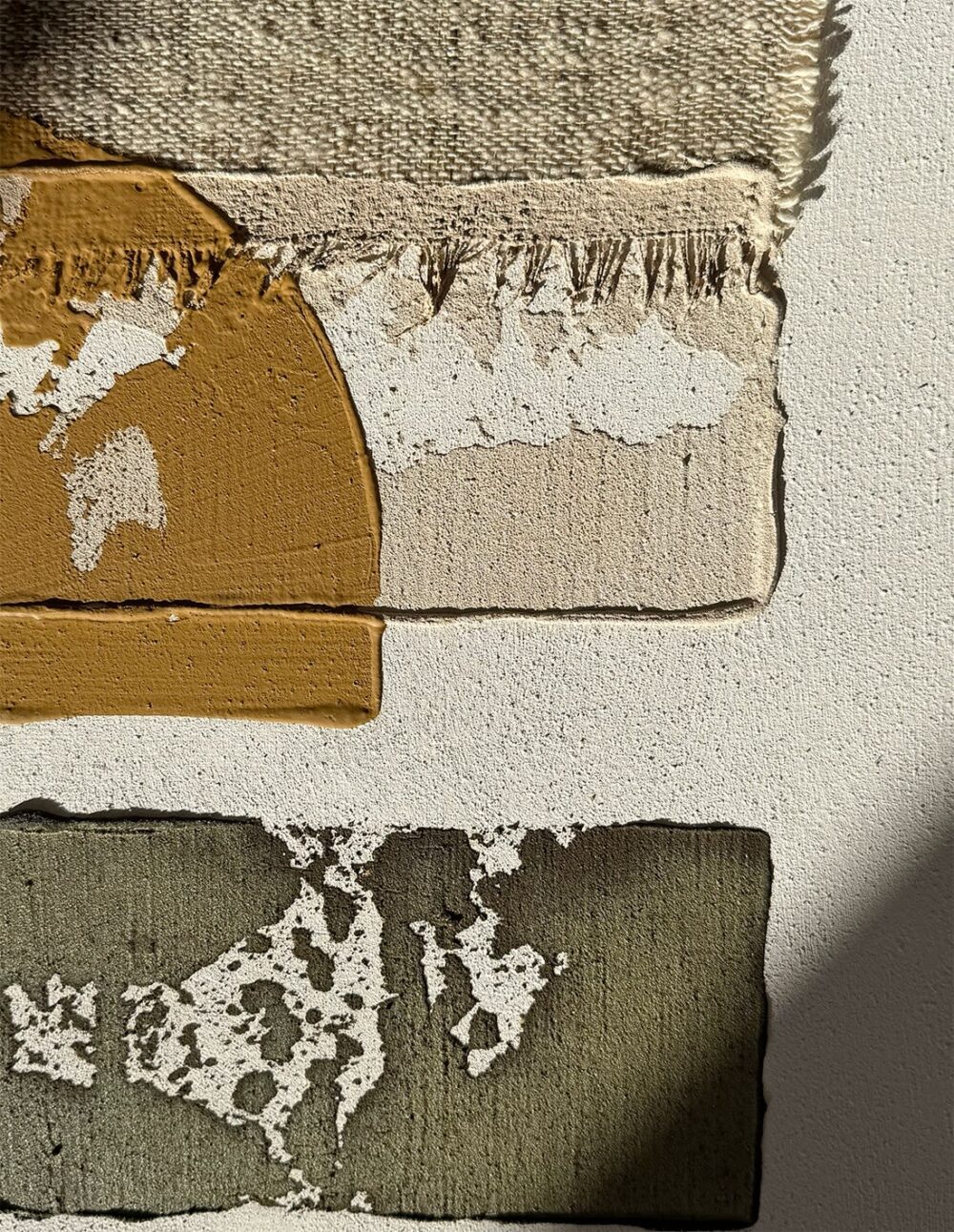 Peinture à la chaux, acrylique, soie sauvage, eau de mer & sable de Madagascar sur chassis entoilé