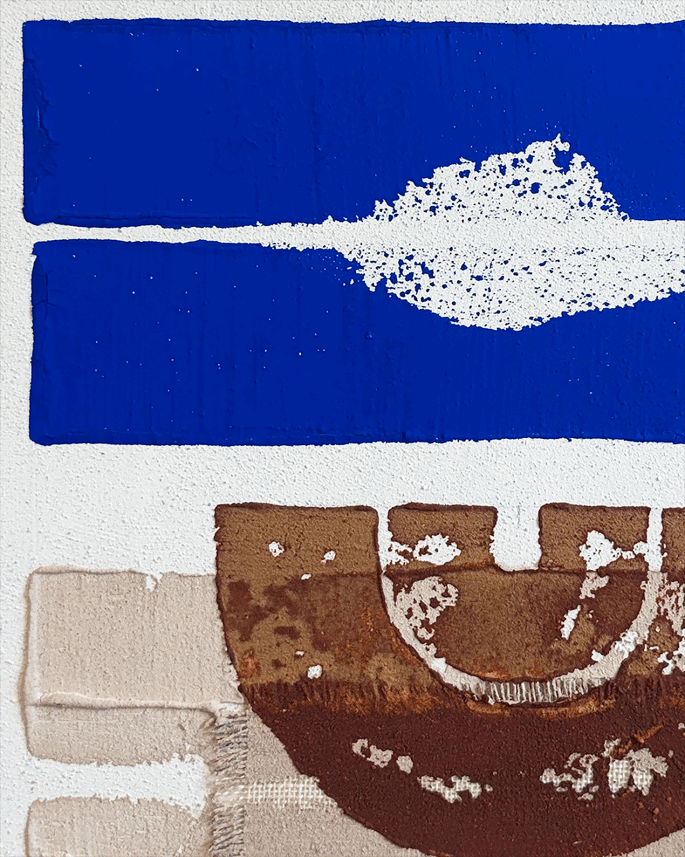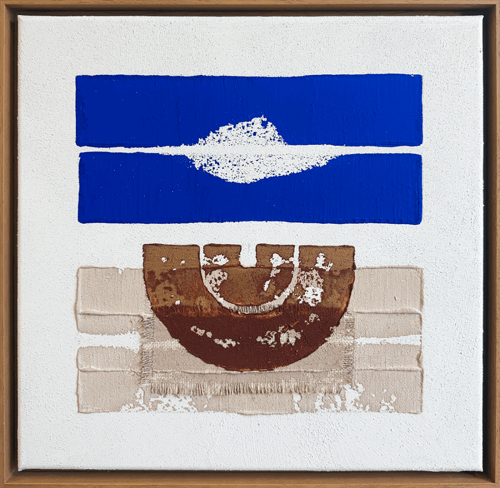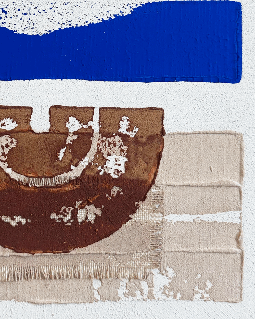 Peinture à la chaux et acrylique, toile de jute, eau de mer & sable de Marrakech sur chassis entoilé