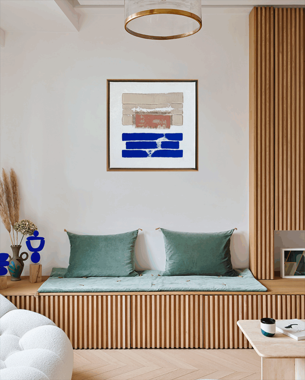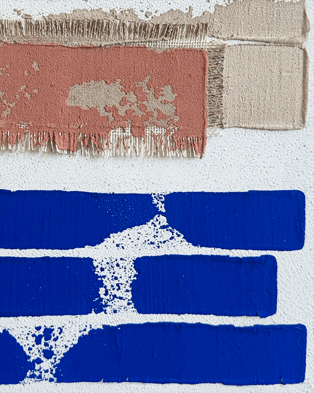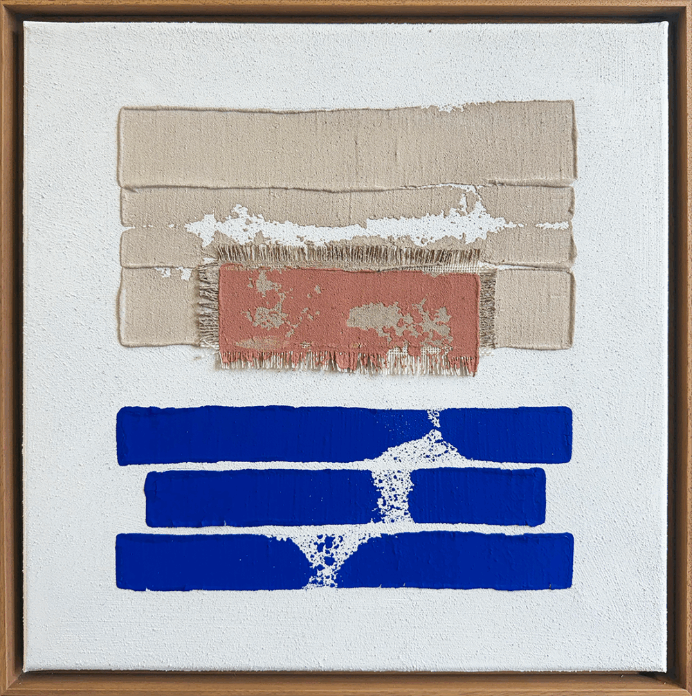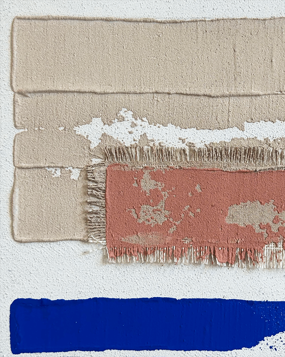 Peinture à la chaux et acrylique, toile de jute, eau de mer & sable de Marrakech sur chassis entoilé
