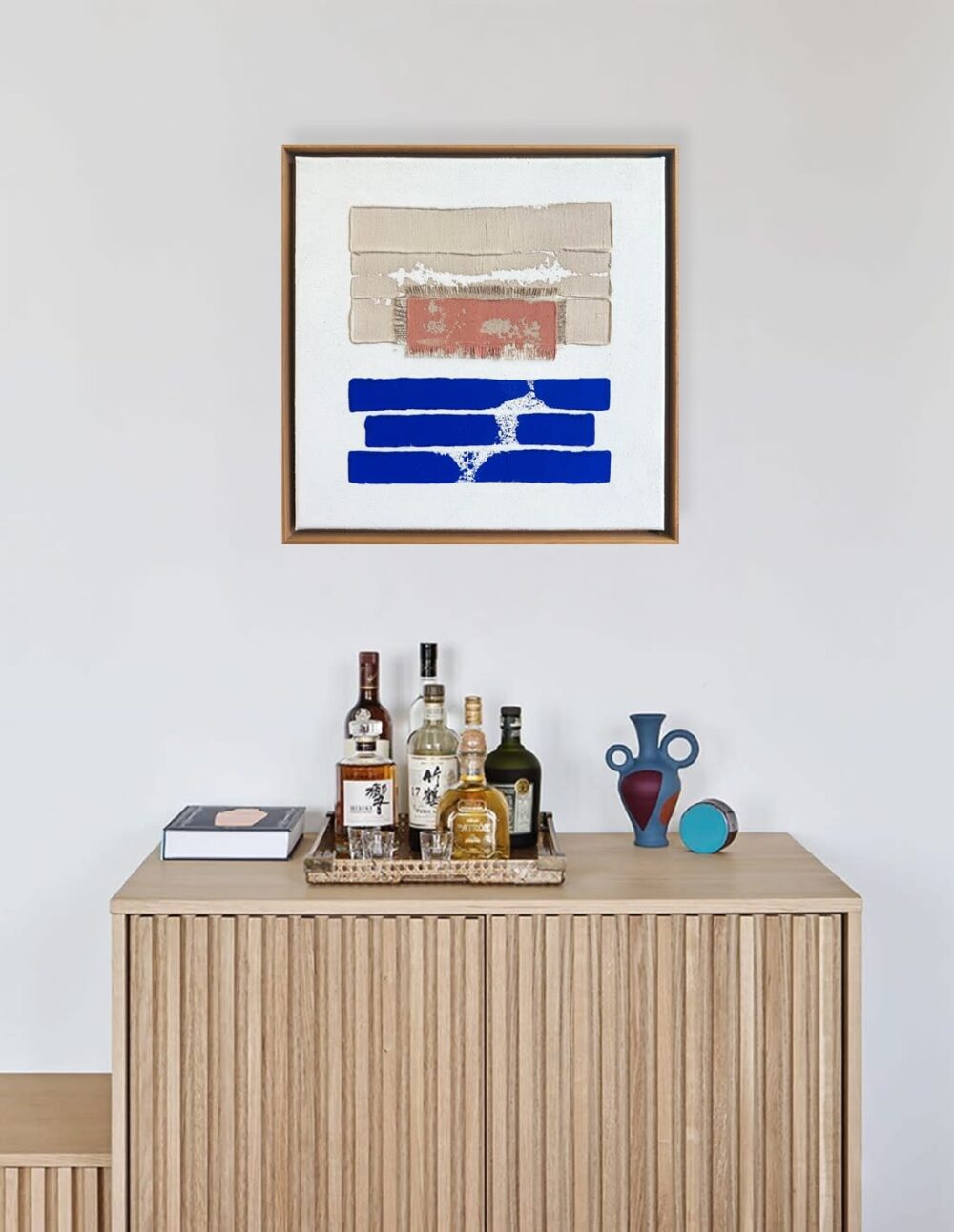 Peinture à la chaux et acrylique, toile de jute, eau de mer & sable de Marrakech sur chassis entoilé
