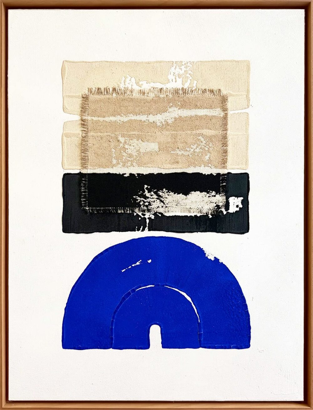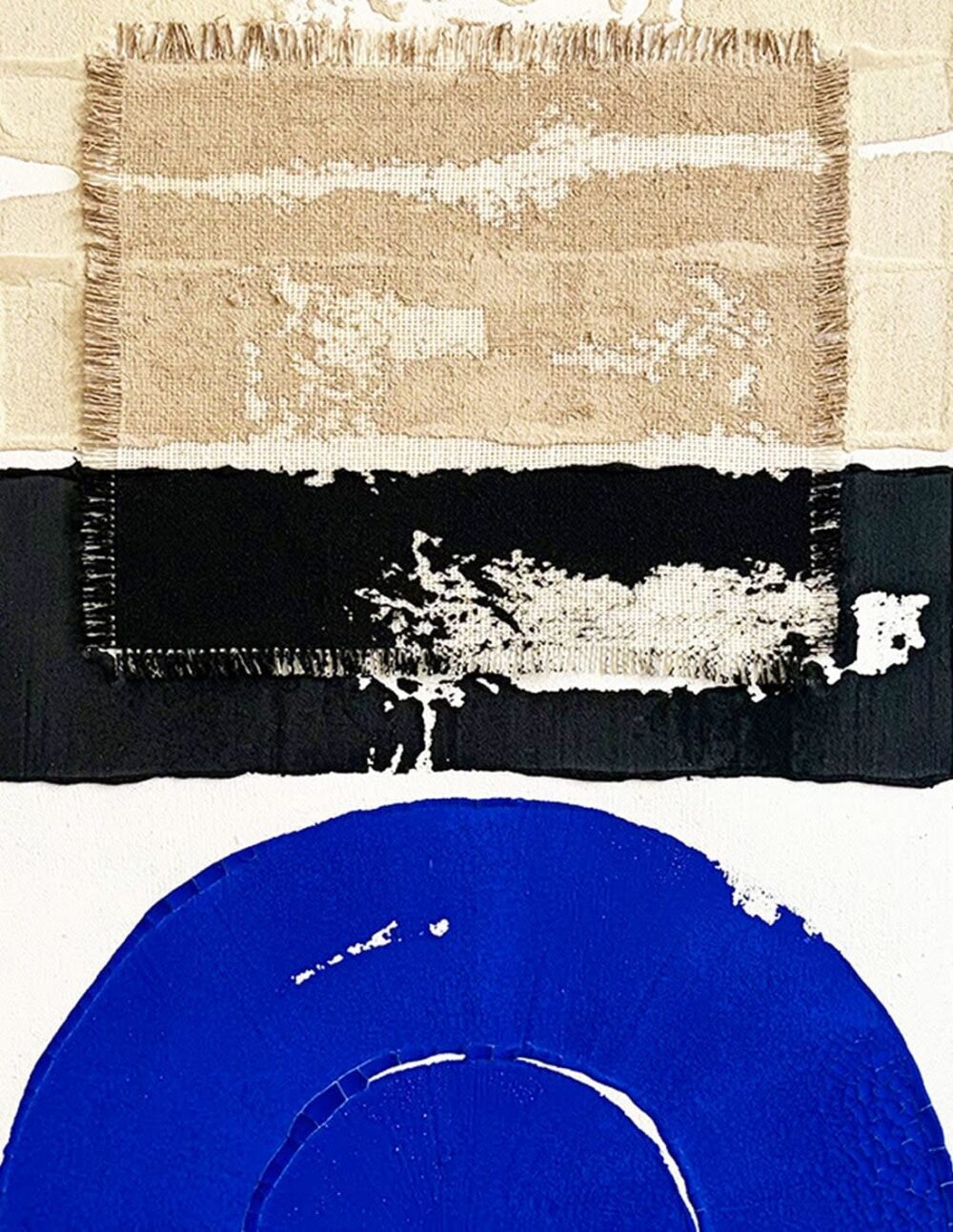 Peinture à la chaux et acrylique, toile de jute, eau de mer & sable de Mykonos sur chassis entoilé