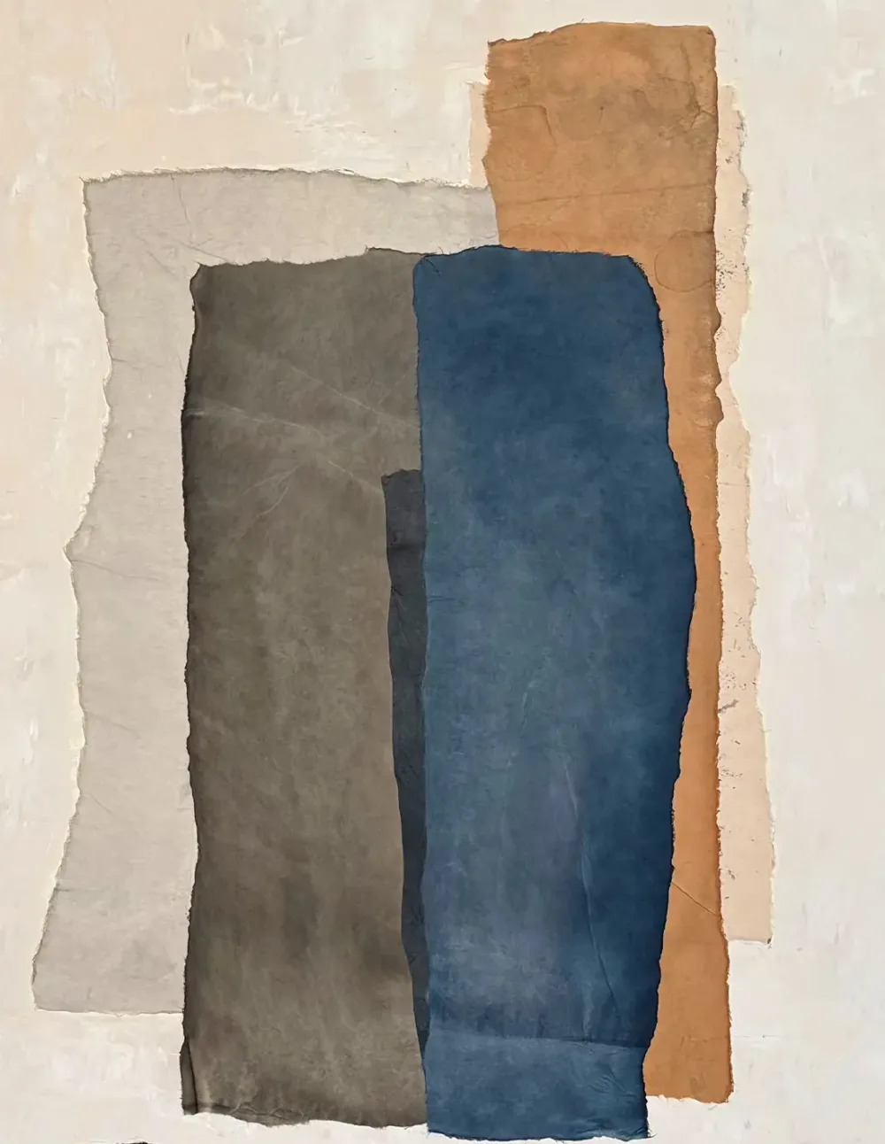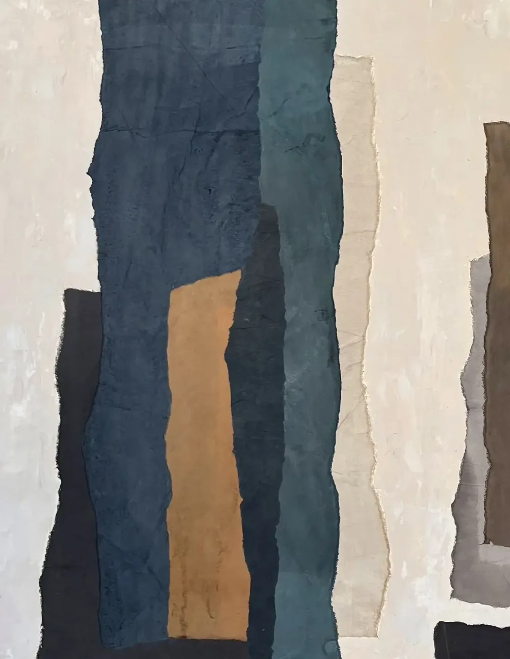 Les tons neutres et l’aspect texturé de ces œuvres s’accordent parfaitement aux matériaux bruts qu’on peut retrouver chez soi : pierres, bois, briques.