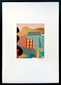 Estampe d'après une aquarelle originale, réhaussée par l'artiste à la feuille d'or