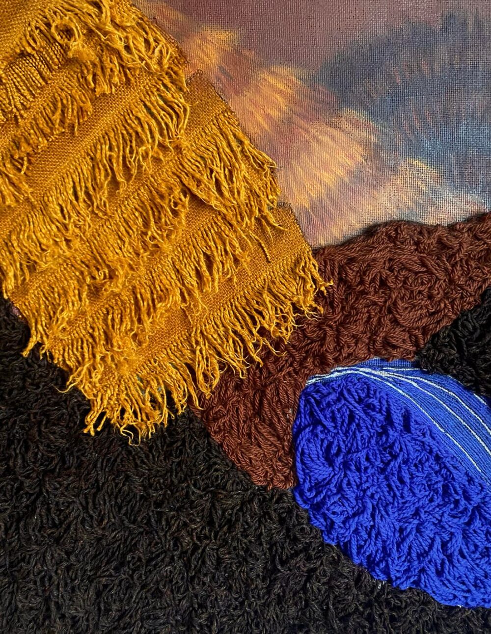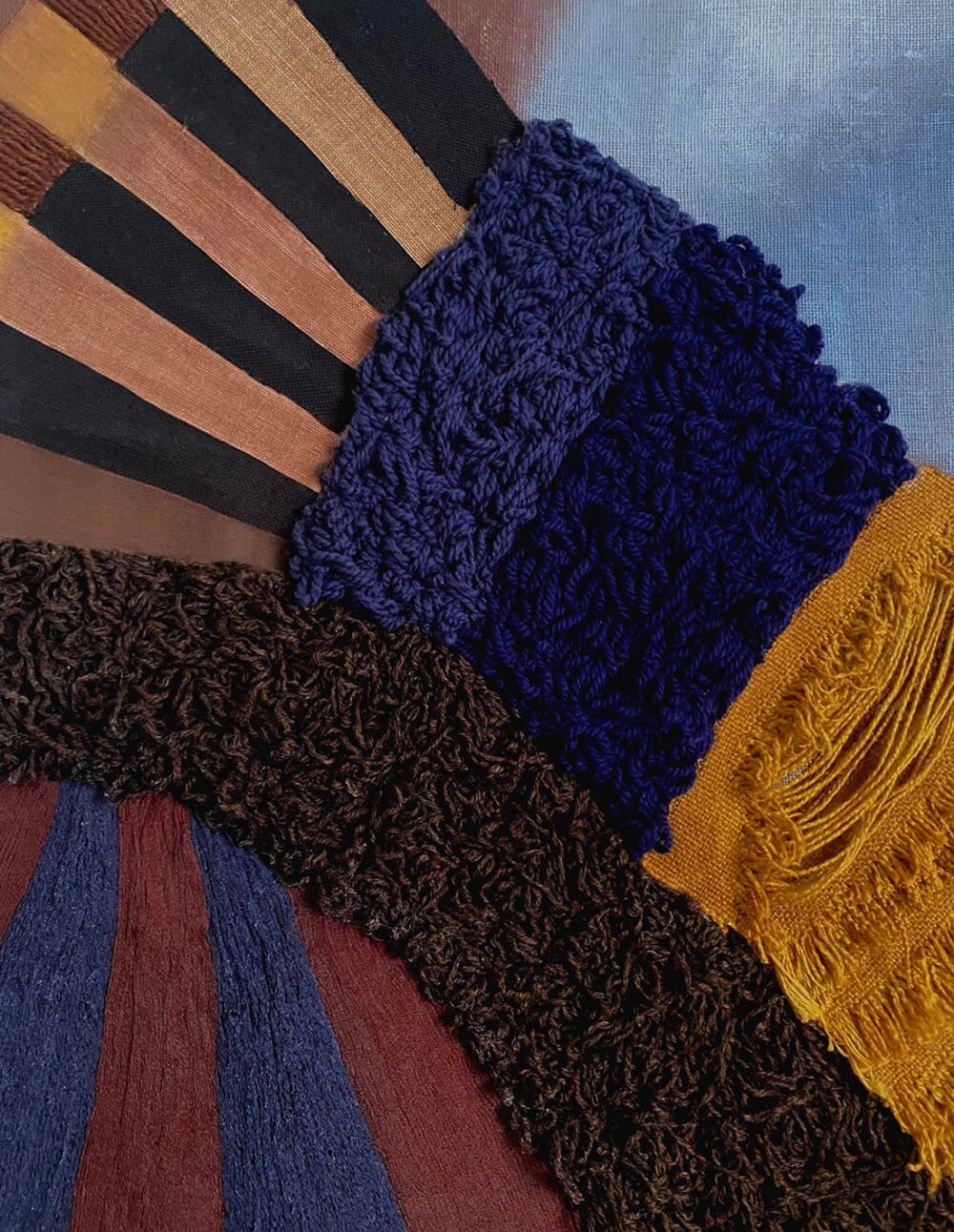 Acrylique, collages textiles et broderies sur toile de lin