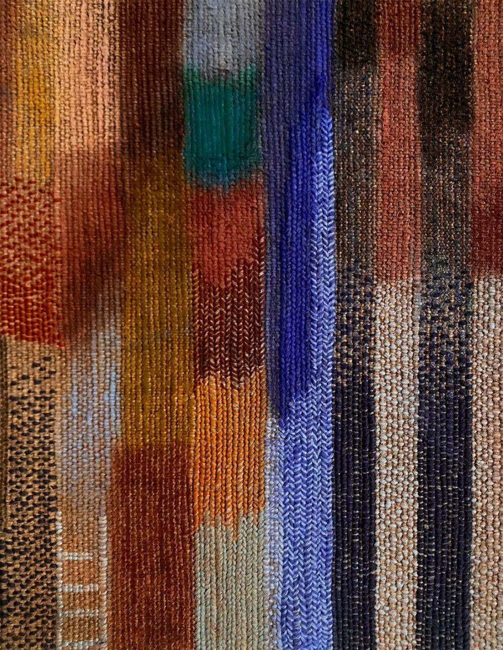 Acrylique, pigments, pastels et broderies sur toile de lin