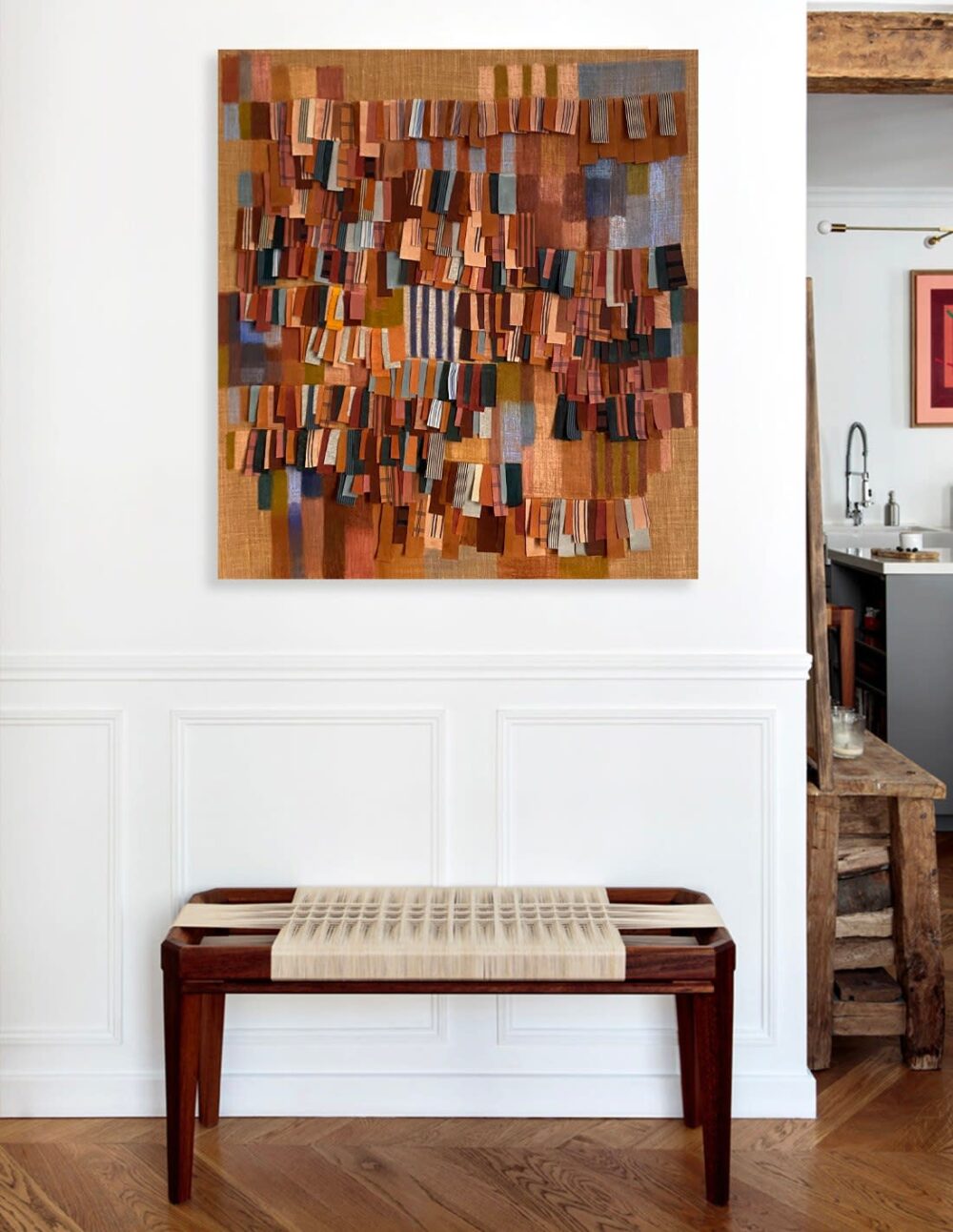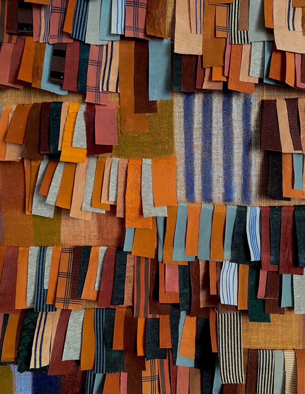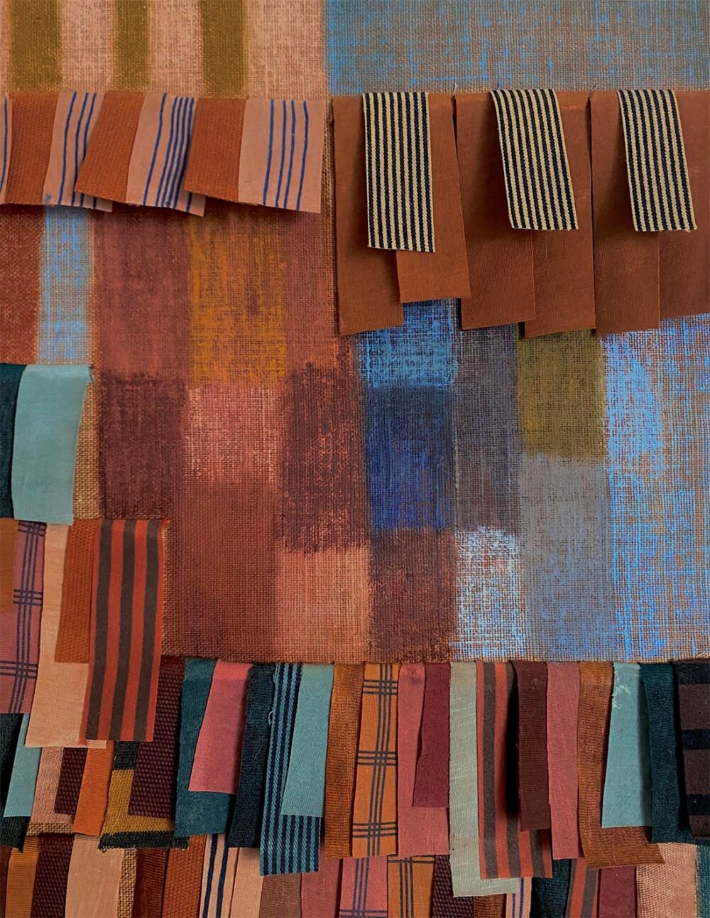 Collages textiles, acrylique et pastels sur toiles de lin