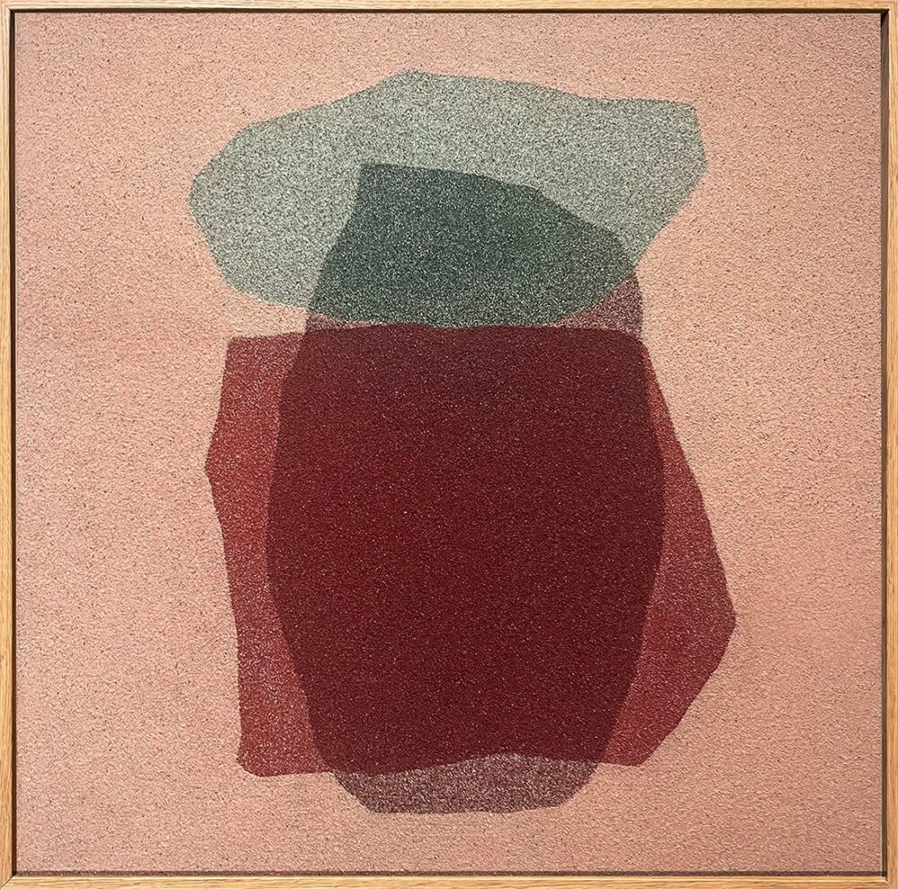 Collage de sable et pigments sur carton gris
