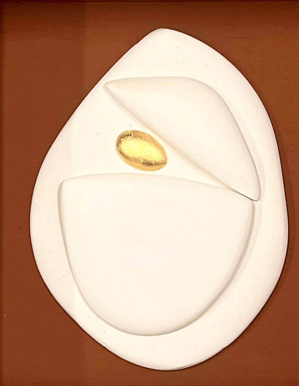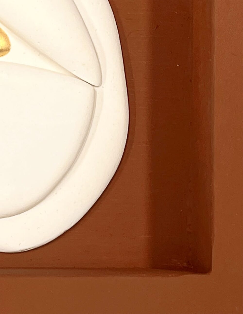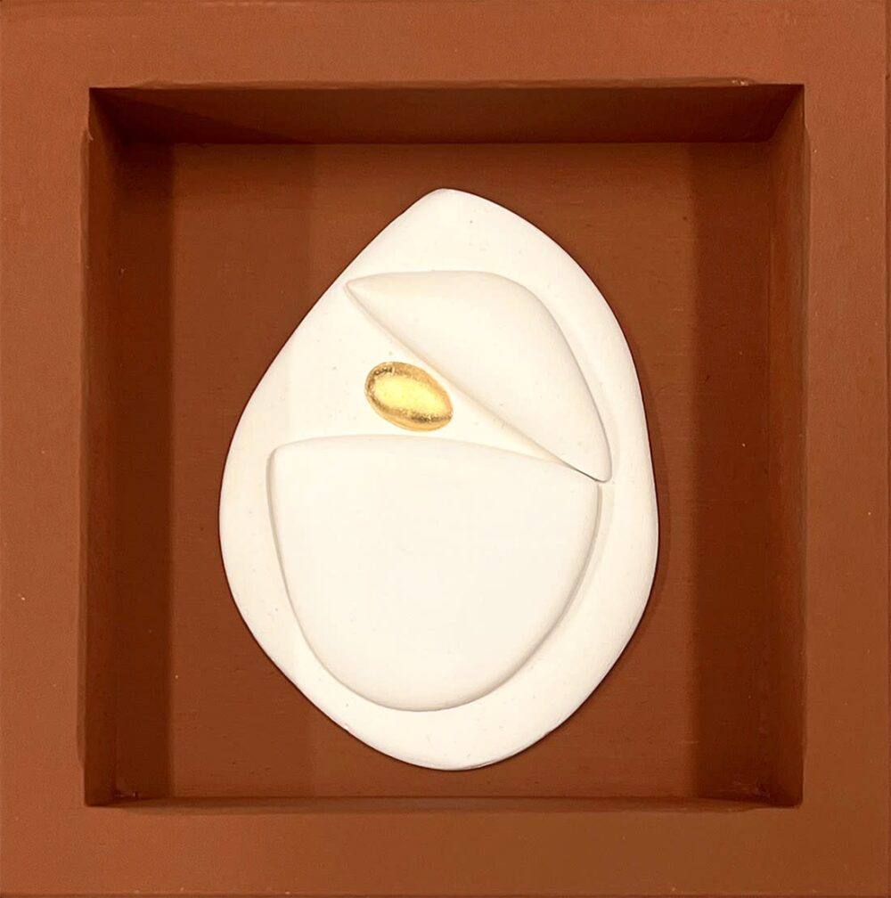 Bas-relief en plâtre, or 23 carats sur cadre en bois peint
