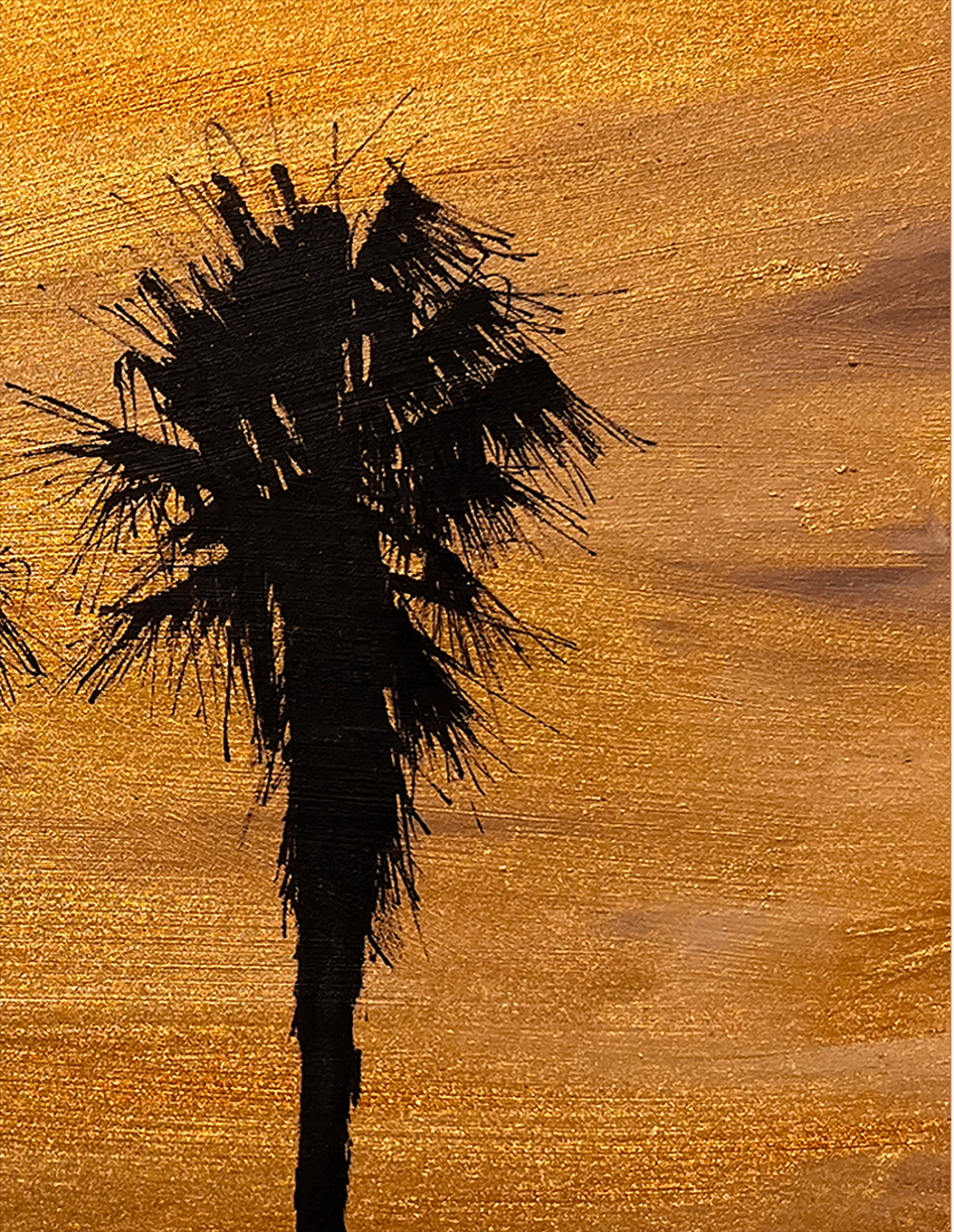 Pigments dorés et encre POSCA sur papier bois