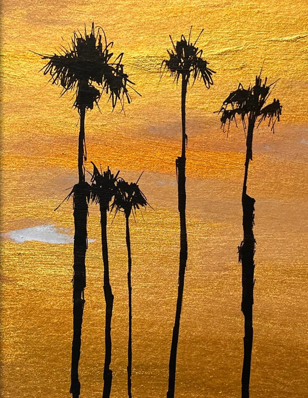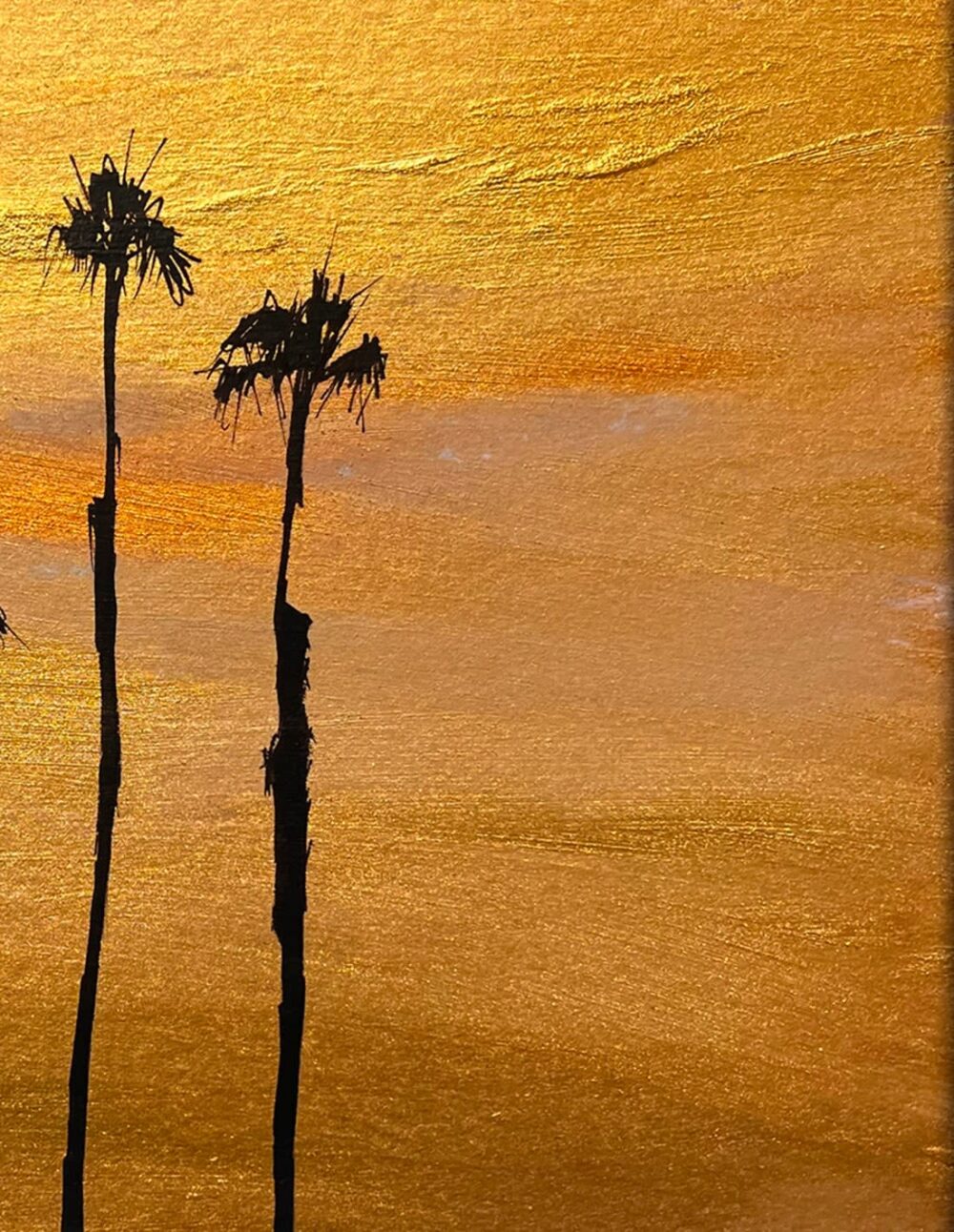Pigments dorés et encre POSCA sur papier bois
