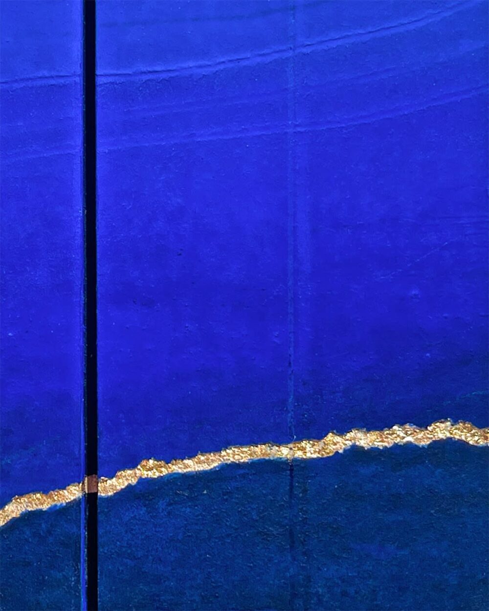 Parce que l’utilisation de l’aquarelle sur un papier particulièrement épais et velouté donne un rendu mat et profond dans lequel le regard se plonge. Parce que le jeu de déchirement et de collages offre un relief ajoutant à la puissance des couleurs.