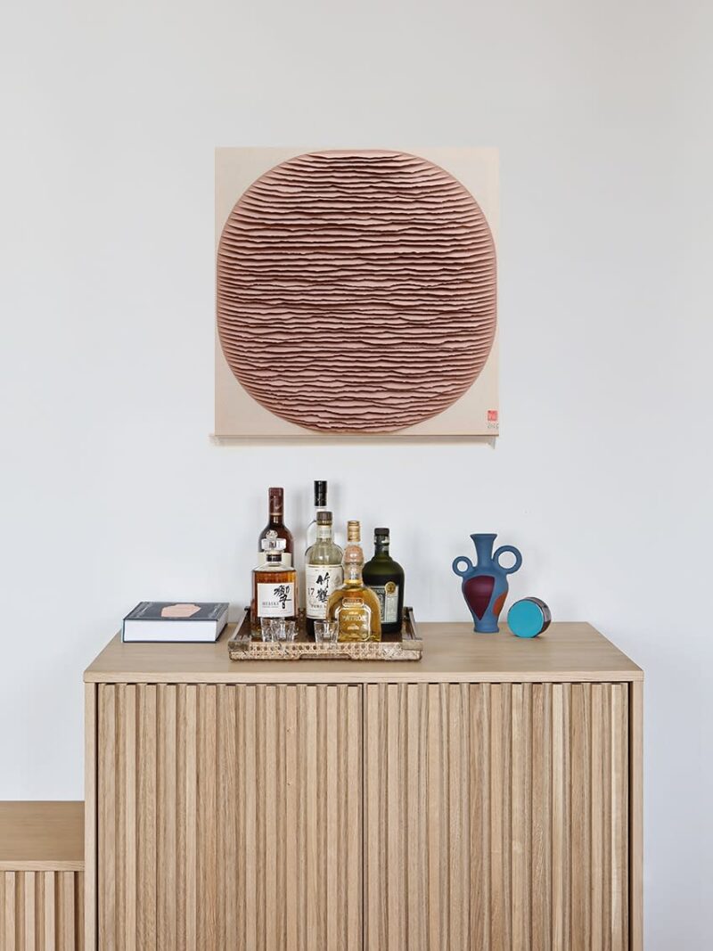 Papier Canson déchiré à la main et marouflé sur toile, coffrage en plexiglas