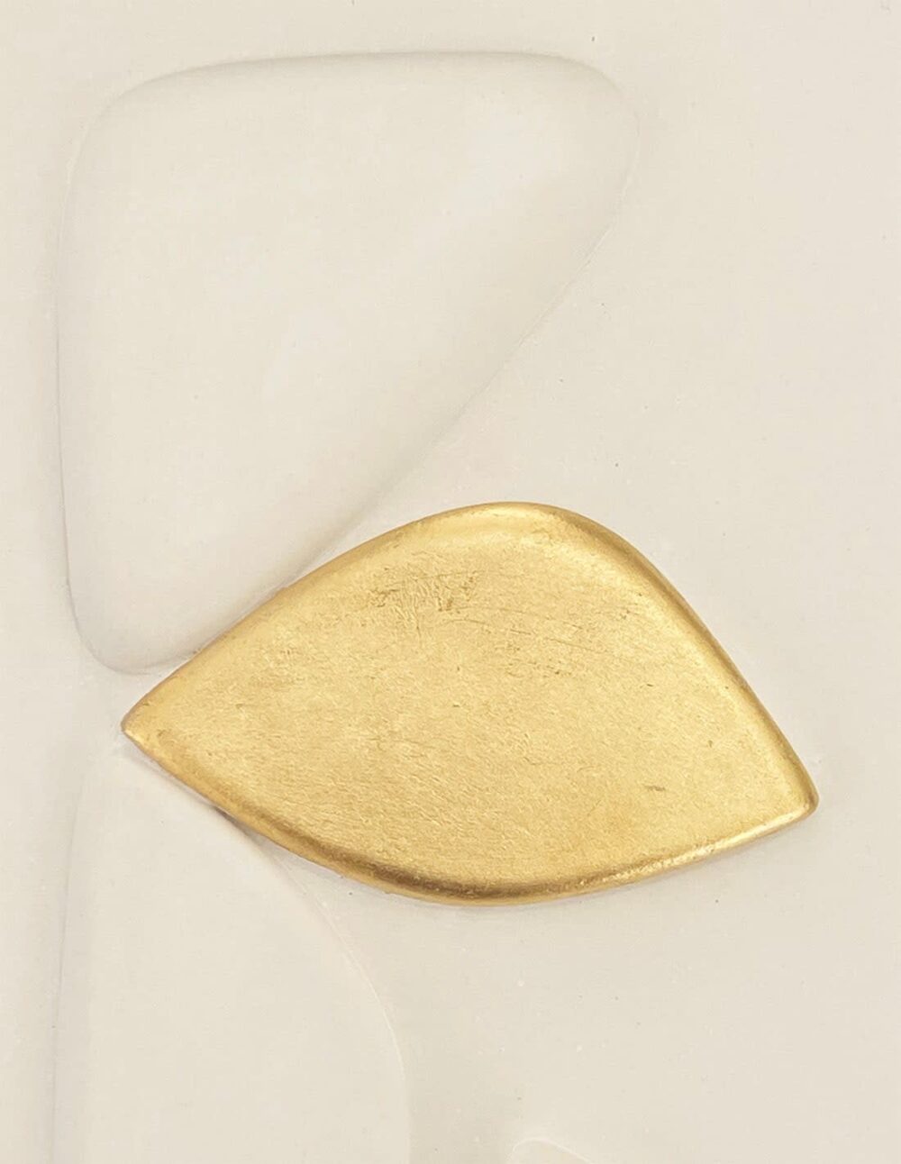 Bas-relief en plâtre, or 23 carats sur cadre en bois peint