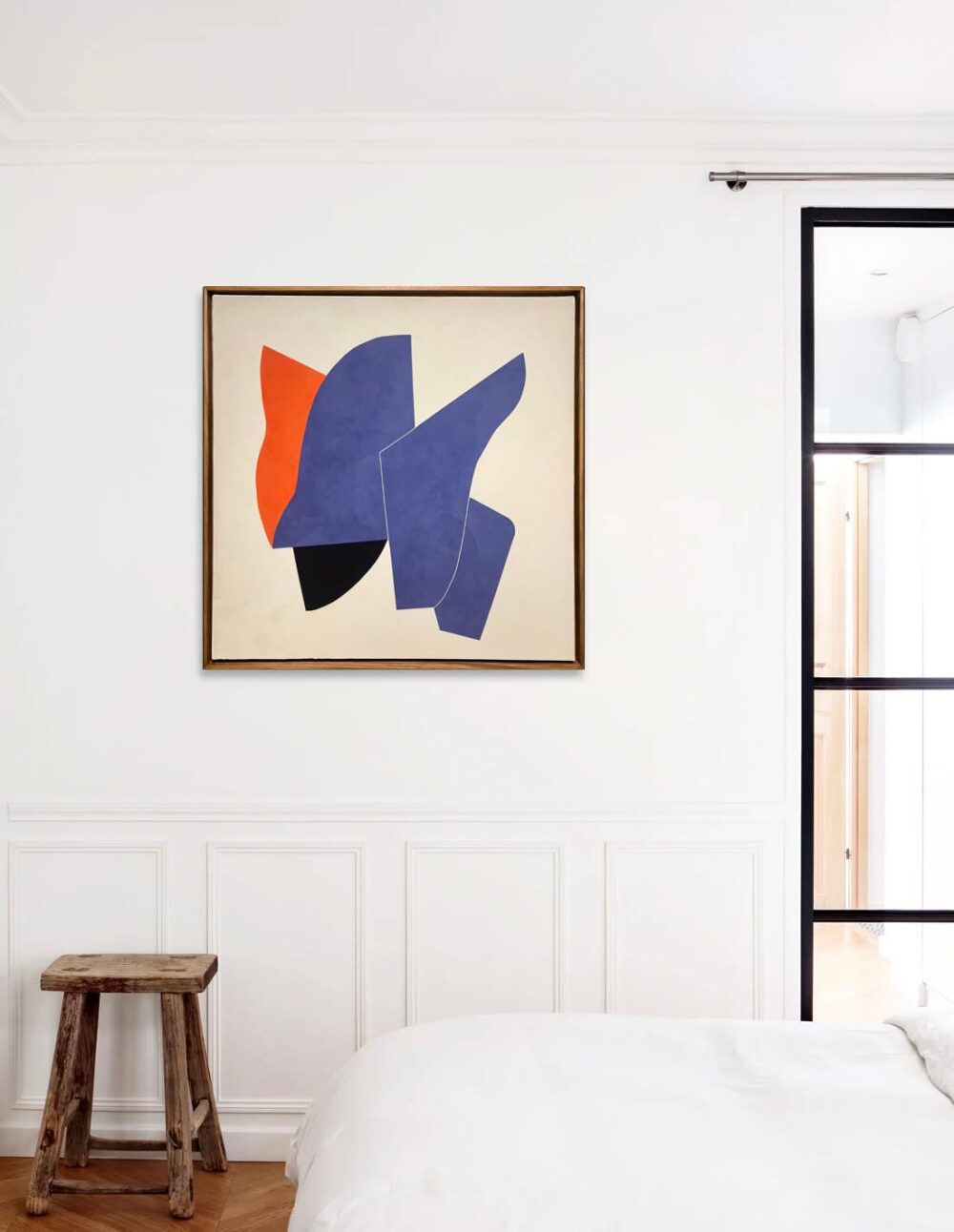 Sans titre (fond beige, formes: orange, bleue, noire)