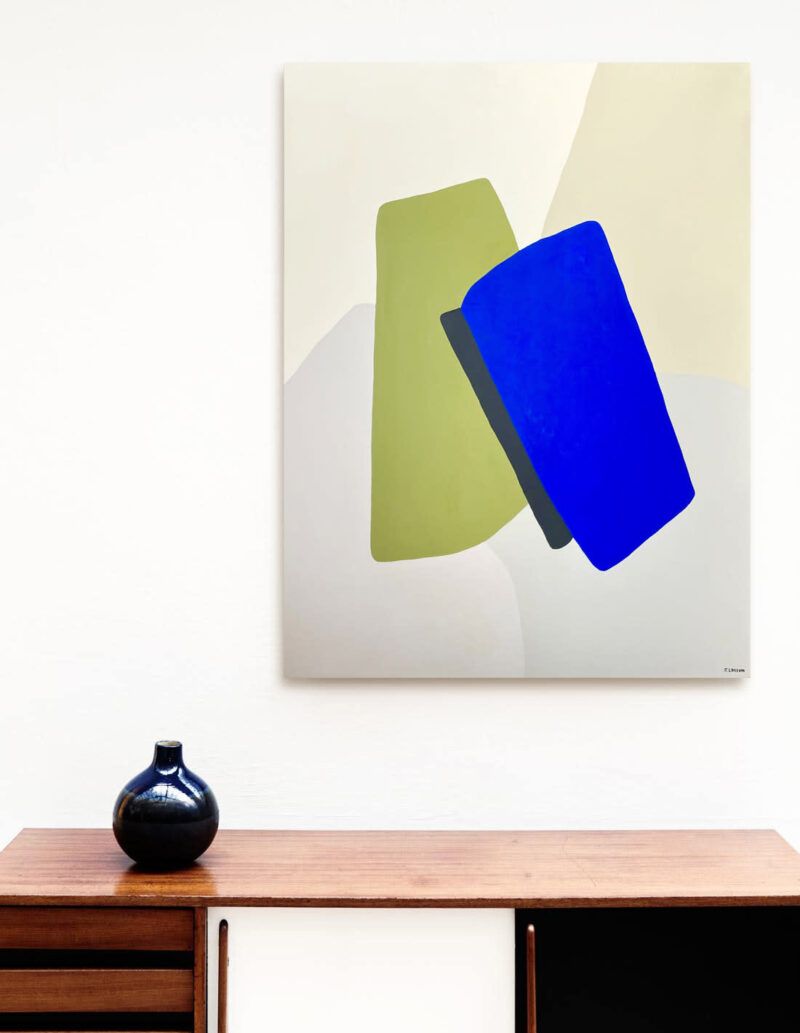 Parce que les grandes toiles de Julie nous font sensiblement voyager dans le Sud de la France. Parce que les compositions abstraites et subtilement nuancées nous apaisent.