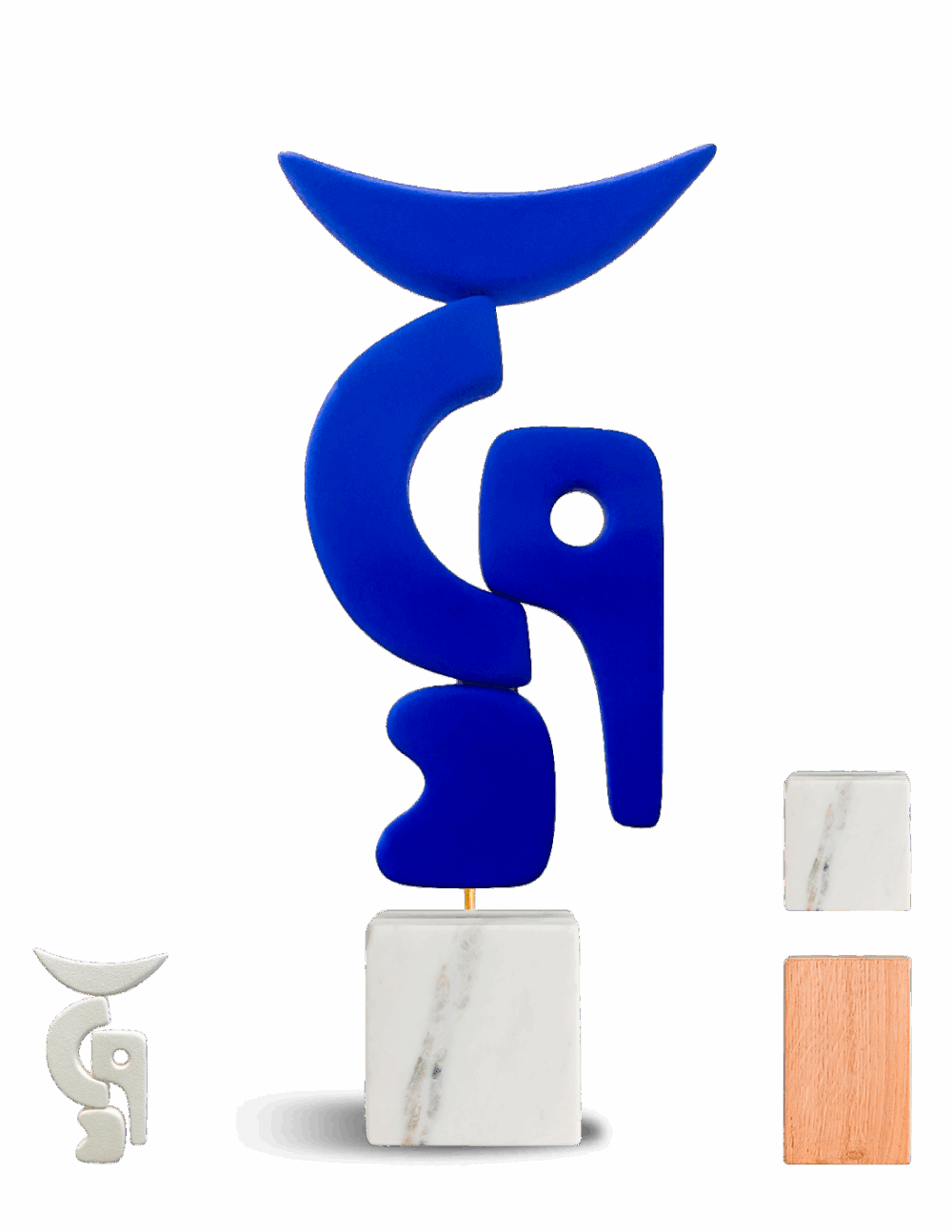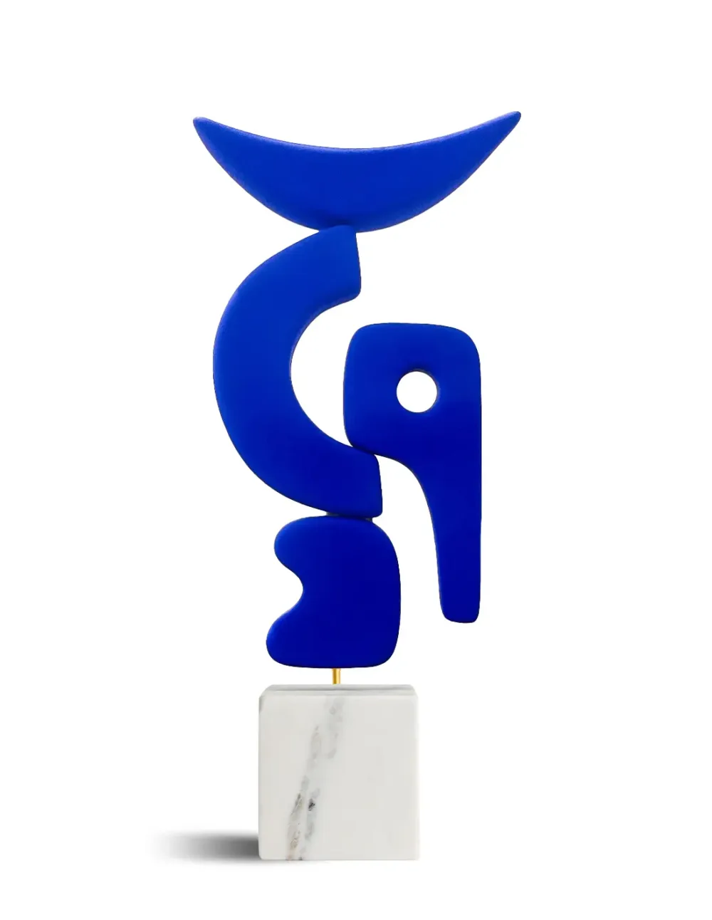 Céramique peinte (pigments bleus mats) sur socle en marbre