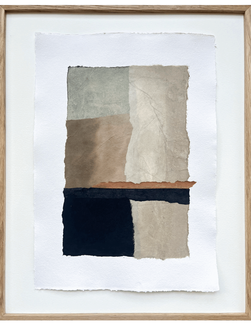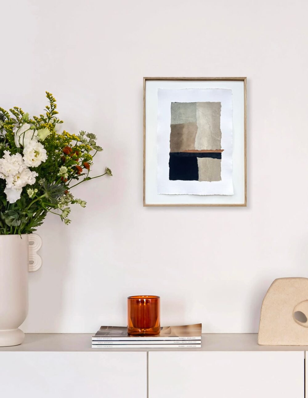 Les tons neutres et l’aspect texturé de ces œuvres s’accordent parfaitement aux matériaux bruts qu’on peut retrouver chez soi : pierres, bois, briques.