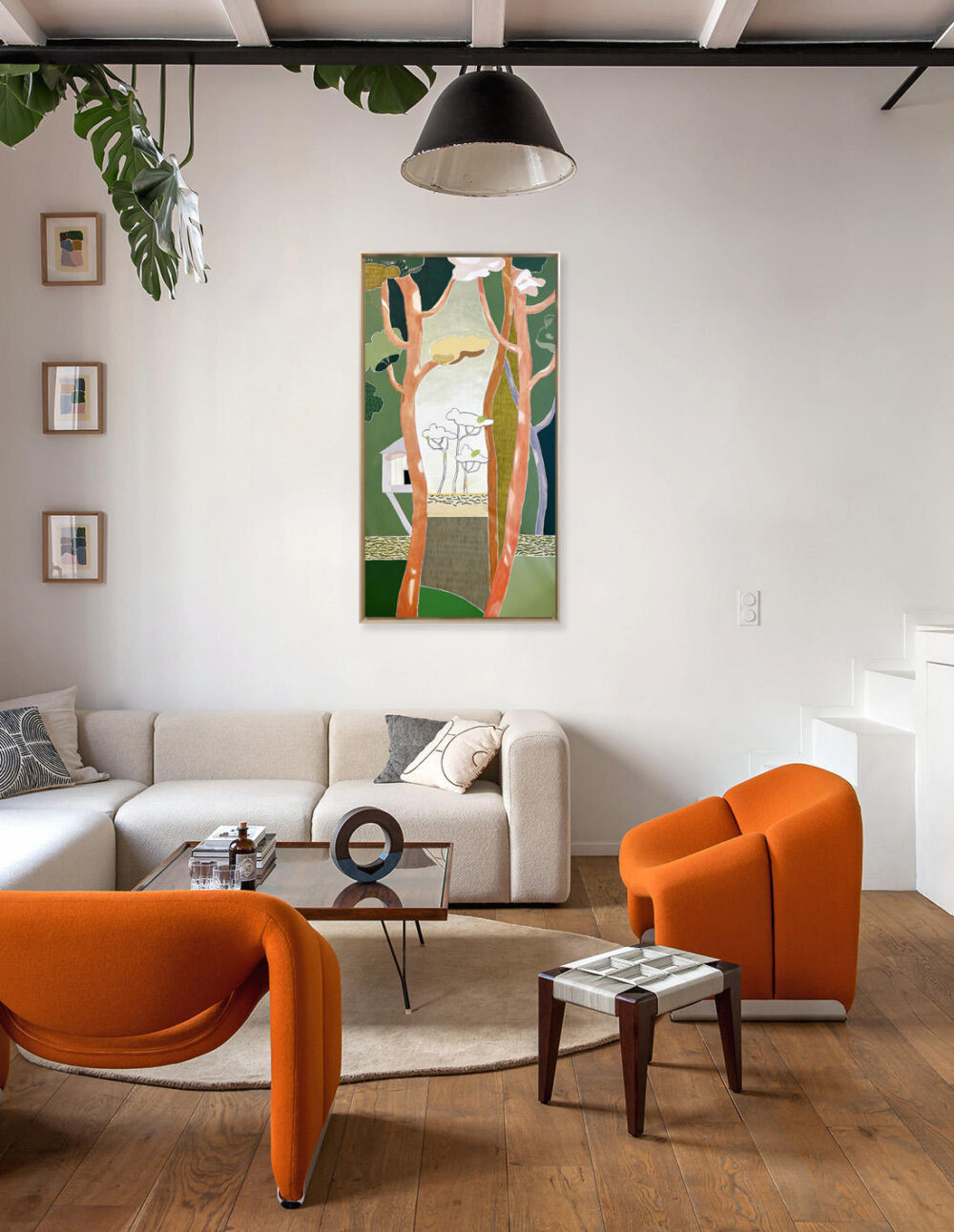 Diplômée en arts graphiques, Pascaline a travaillé comme directrice de création dans des agences de publicité et d’identité visuelle. À l’époque, elle créait de véritables maquettes en 3D de packaging, des choses très minutieuses qu’on retrouve dans ses collages de petits formats.
