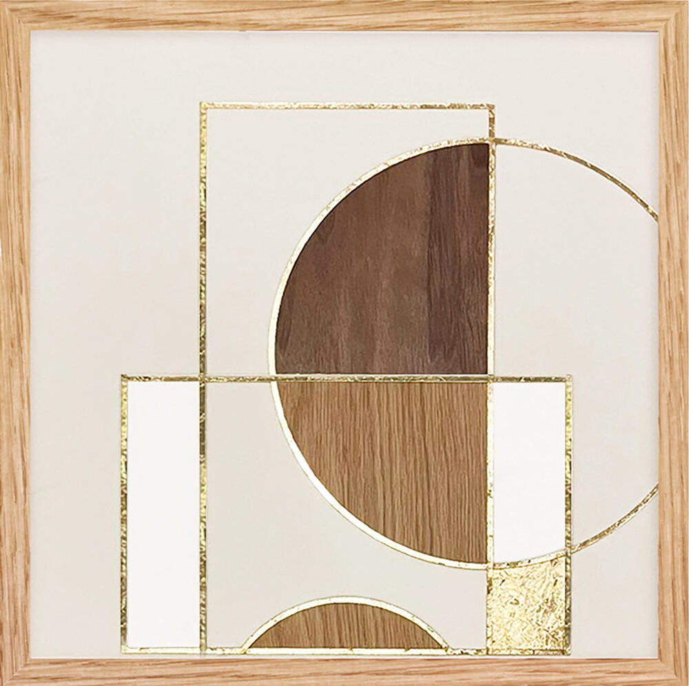 Papier découpé, feuille de bois noyer et chêne, feuille d’or