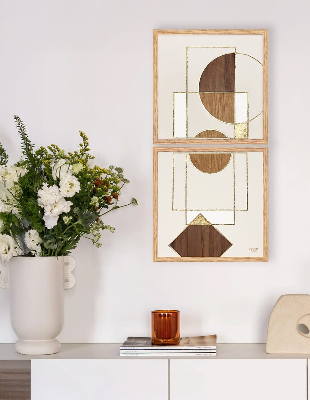 On positionne les tableaux de Marion sur un coin de cheminée ou face à une fenêtre pour profiter des jeux de lumière et de relief de ses compositions.