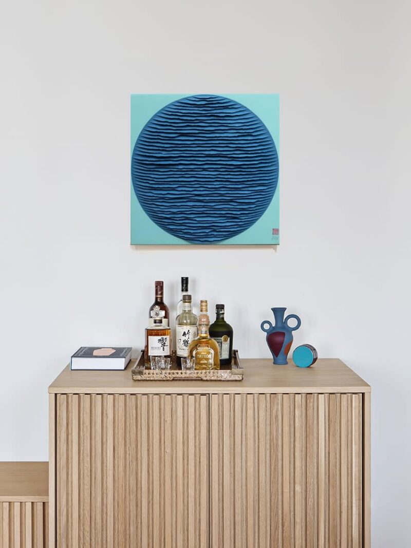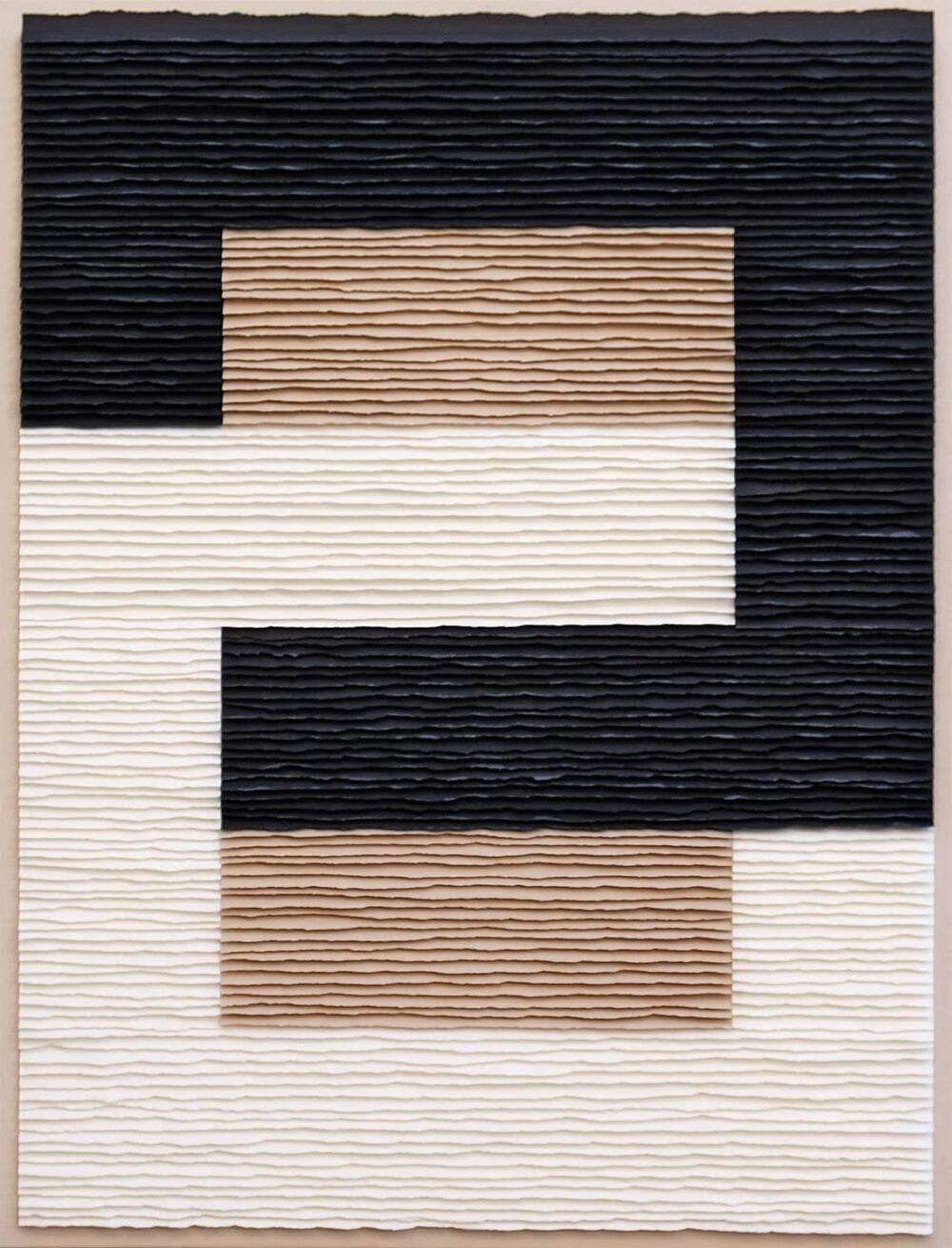 Papier Canson déchiré à la main et marouflé sur toile, coffrage en plexiglas