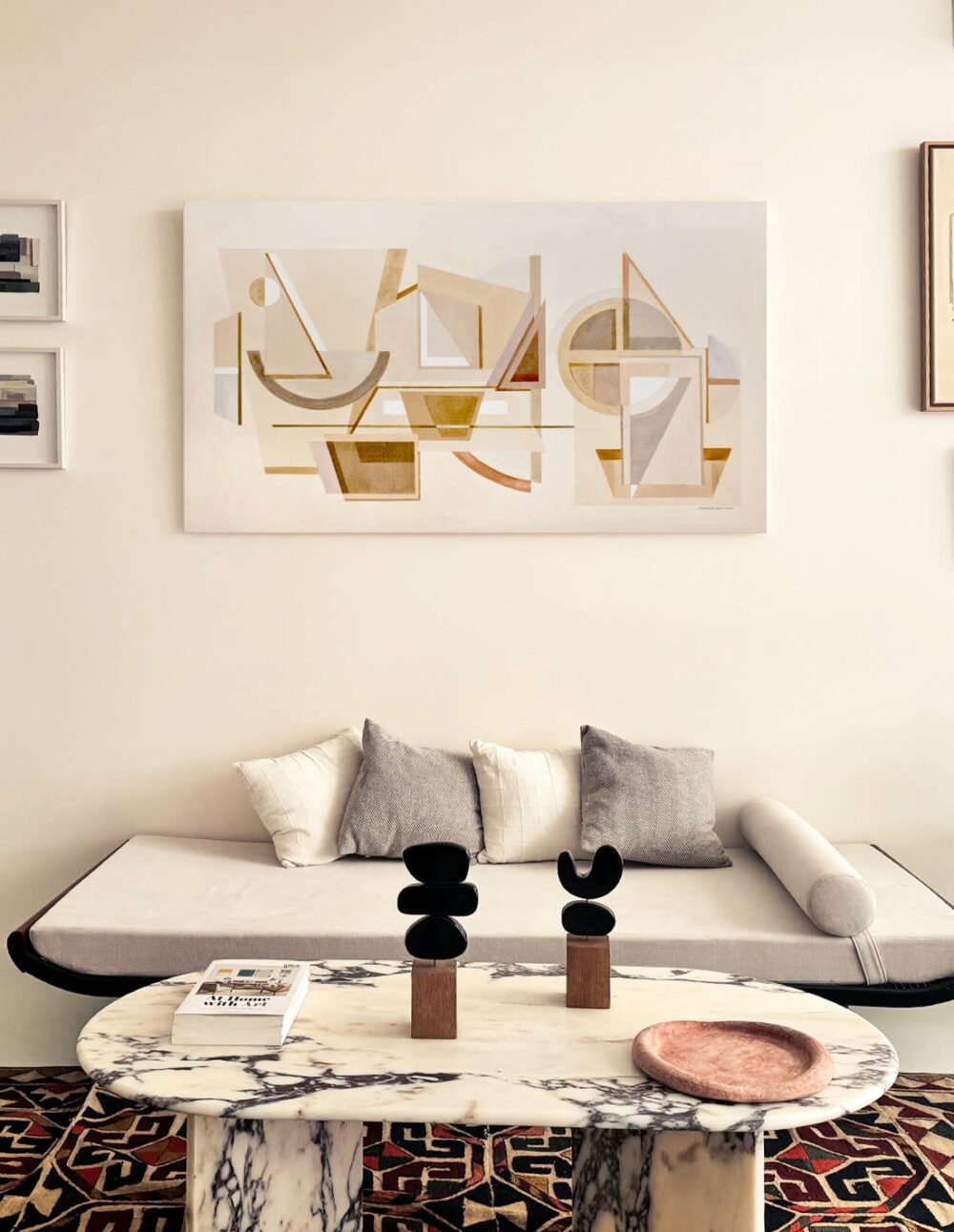 Accordez-vous le temps d'observer chaque détail des formes géométriques et les nuances de couleurs qui évoquent des émotions, en installant l’œuvre dans une pièce où vous passez beaucoup de temps. Aménagez un coin confortable avec un fauteuil et un éclairage doux, où vous pouvez vous asseoir et contempler les œuvres en toute tranquillité. Ajoutez des plantes ou des éléments naturels autour des œuvres pour renforcer la connexion avec l'environnement que Serena évoque, et enrichir l'esthétique de votre espace.