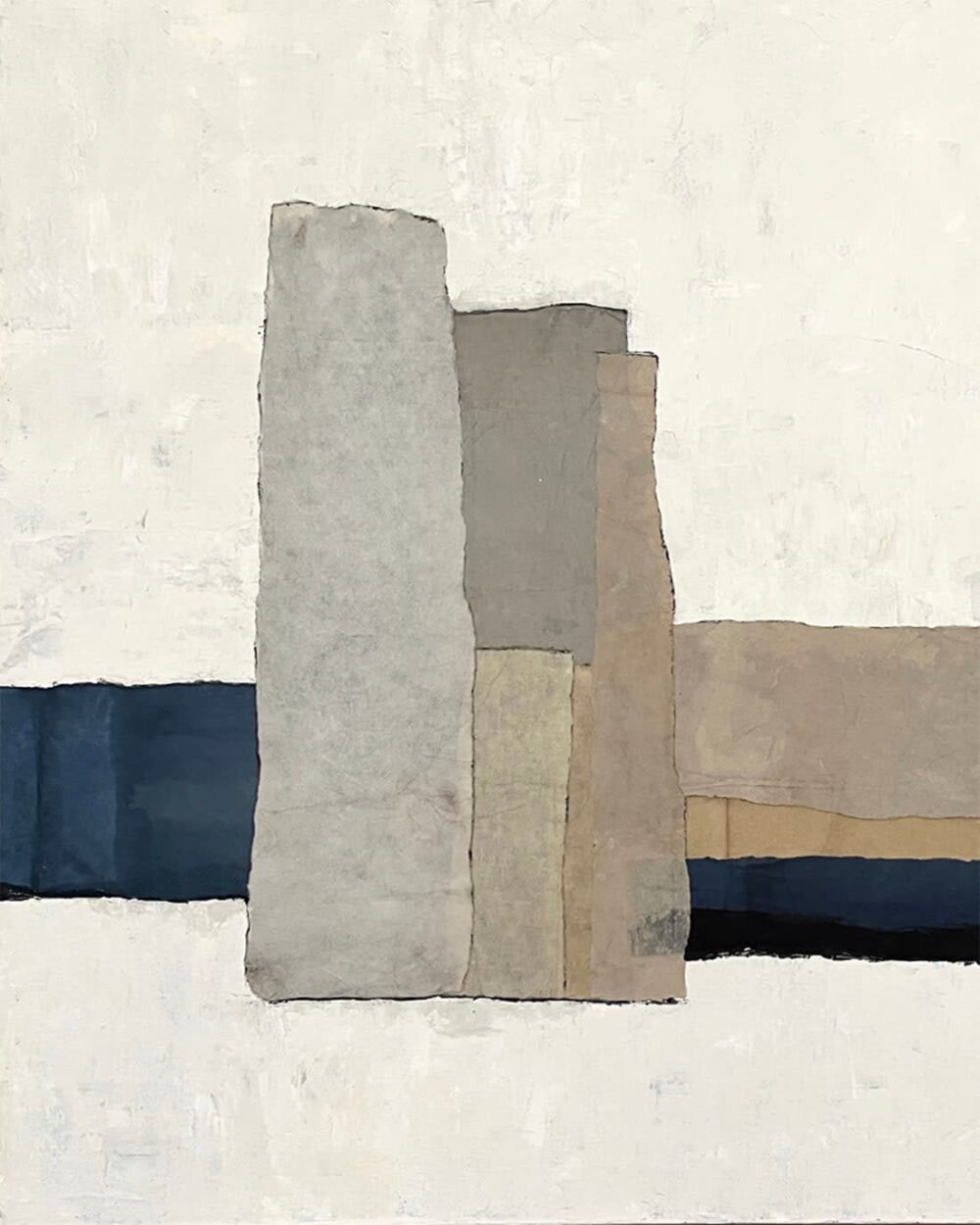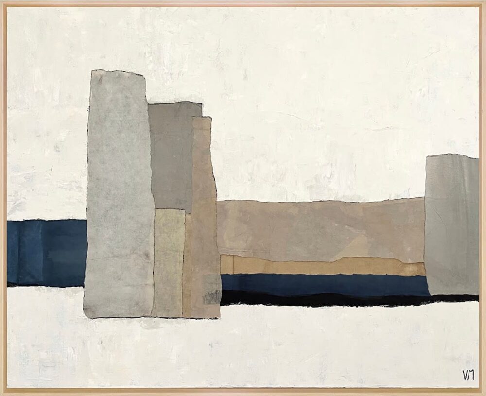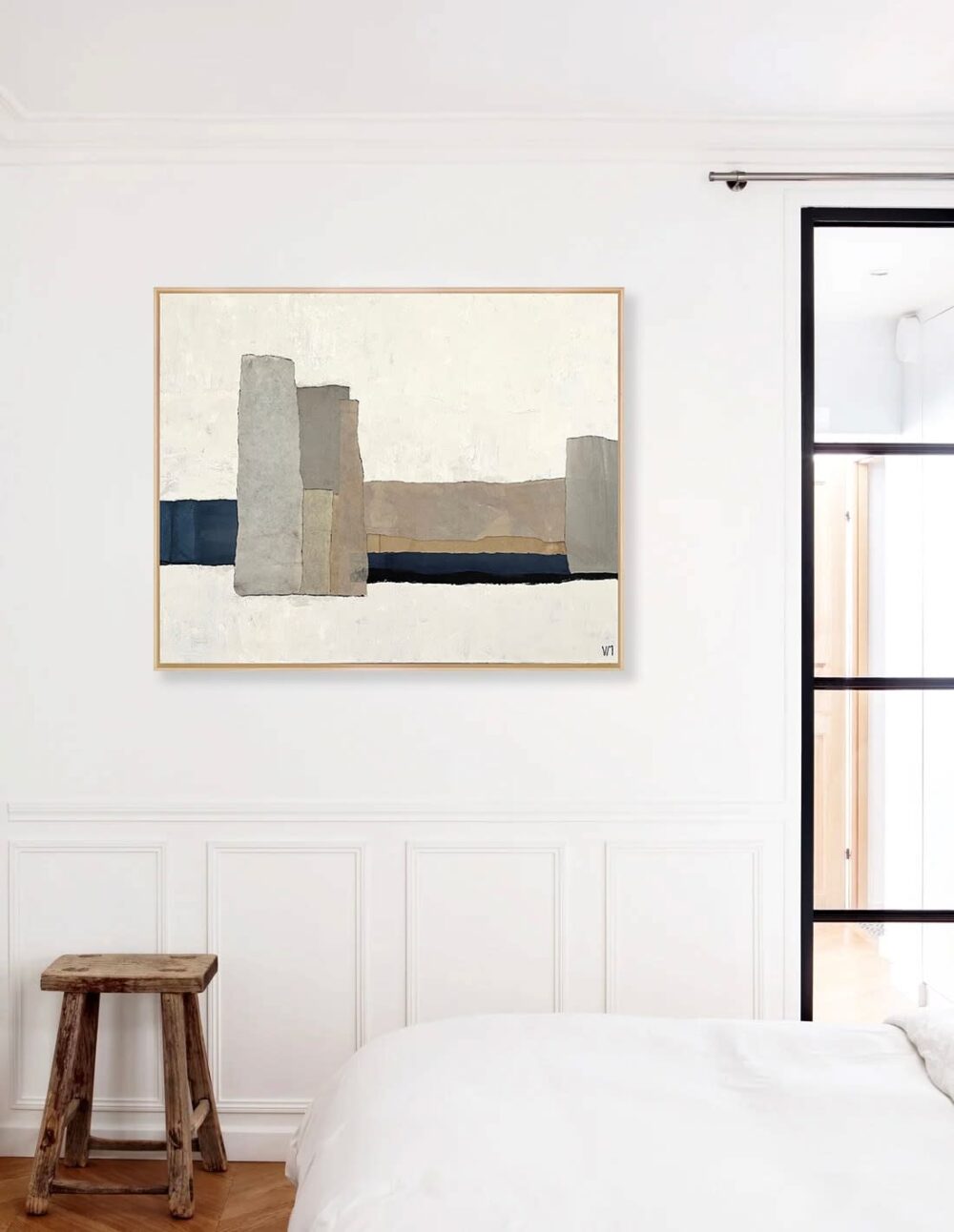 Les tons neutres et l’aspect texturé de ces œuvres s’accordent parfaitement aux matériaux bruts qu’on peut retrouver chez soi : pierres, bois, briques.