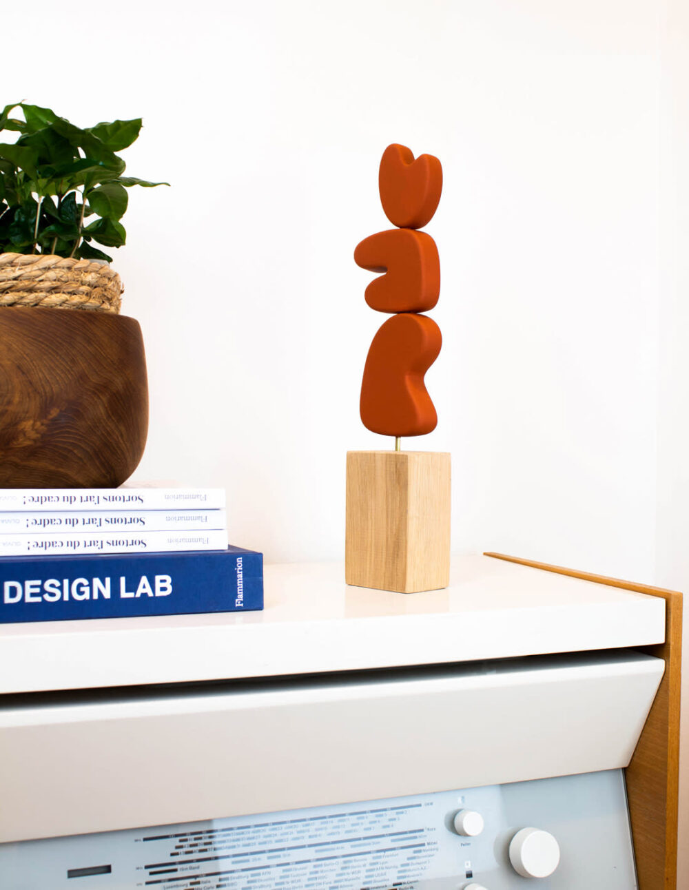 Amélie a longtemps travaillé dans la mode, plus particulièrement comme chef de produit dans le luxe pour la marque de cachemire Leetha. Pour concevoir ses sculptures, elle poursuit le même processus créatif : une idée, un croquis, un prototype et la forme prend vie !