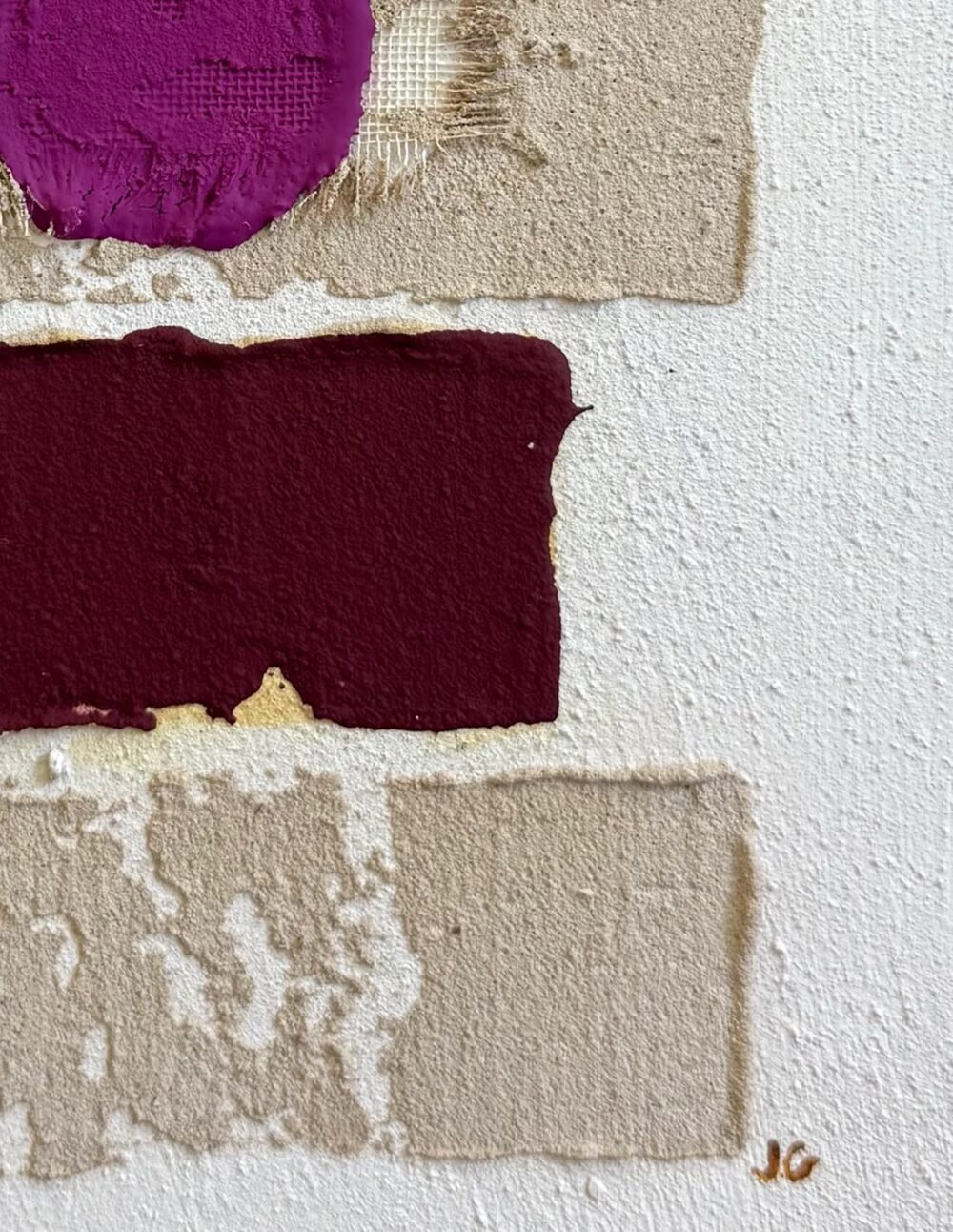 Parce que l’on sent une expression artistique à la fois maîtrisée et spontanée. Parce que chacune de ses toiles se caractérise par une combinaison géométrique de teintes douces, sombres et vibrantes.